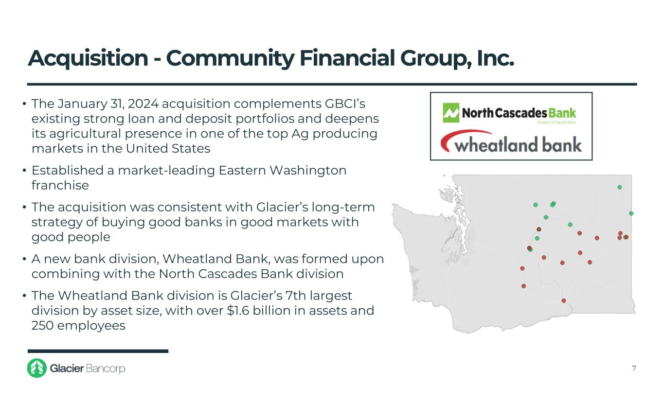 WY ID UT AZ NV WA CO MT • 17 Bank Divisions • 227 Locations (as of 12/31/2024) 6