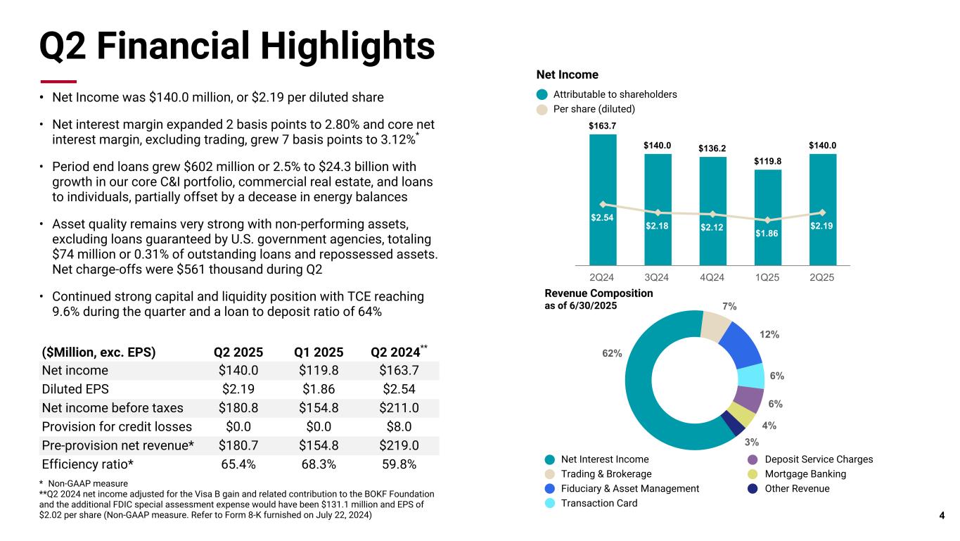 BOKファイナンシャル・コーポレーション、第2四半期の四半期利益は1億4,000万ドル、1株当たり2.19ドル。