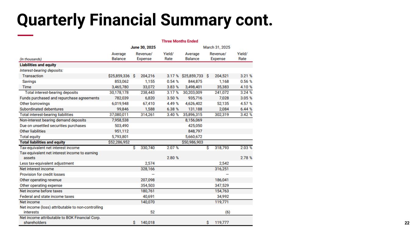 | bokファイナンシャル・コーポレーション四半期決算発表 |