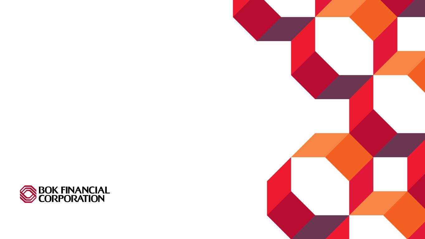 Pri m ar y & se co nd ar y br an d co lor s Data viz colors Data viz monochromatic Wealth Management Awards, Recognition, and Rankings • Retirement Plan Services recognized as a top five provider and recipient of six "Best in Class" awards in 2023 • Eighth largest corporate trustee bank by number of trusteeships and fifth in paying agencies • Among the top bond underwriters and financial advisors in the United States and #1 in Texas • One of the top 25 firms that fulfills the hedging needs of the mortgage banking industry • Fifteen Lipper awards over the past 13 years for Cavanal Hill, our proprietary mutual fund family 10 Cavanal Hill, 2% BOK Financial Securities, 33% Institutional Wealth, 22% Private Wealth, 43% Cavanal Hill BOK Financial Securities Institutional Wealth Private Wealth Cavanal Hill, 4% BOK Financial Securities, 23% Institutional Wealth, 53% Private Wealth, 20% Cavanal Hill BOK Financial Securities Institutional Wealth Private Wealth Wealth AUM by Line of Business Wealth Revenue by Line of Business For the three months ended June 30, 2025 As of June 30, 2025