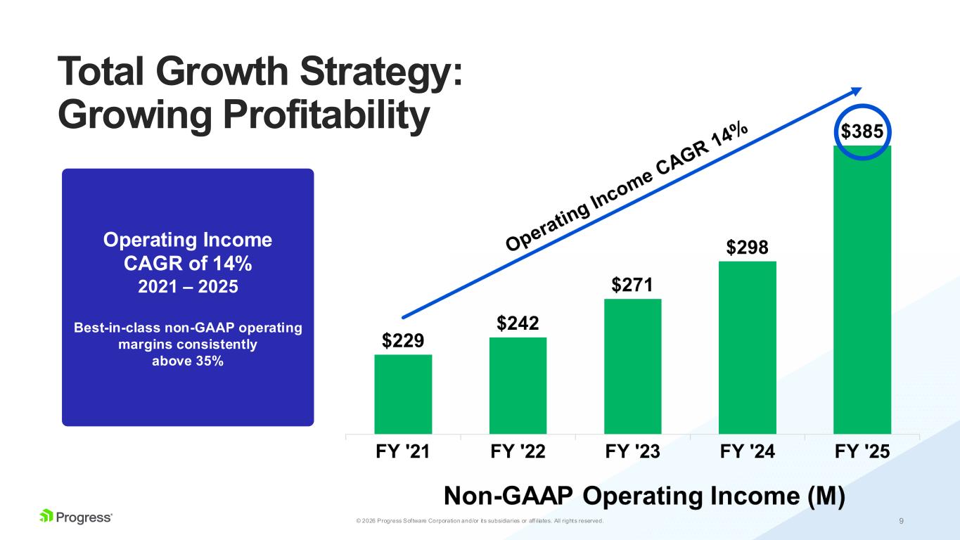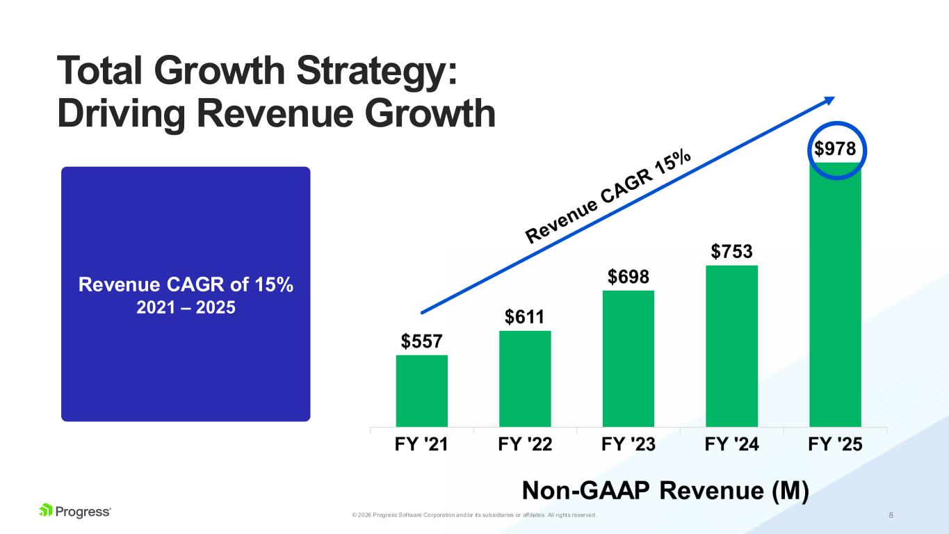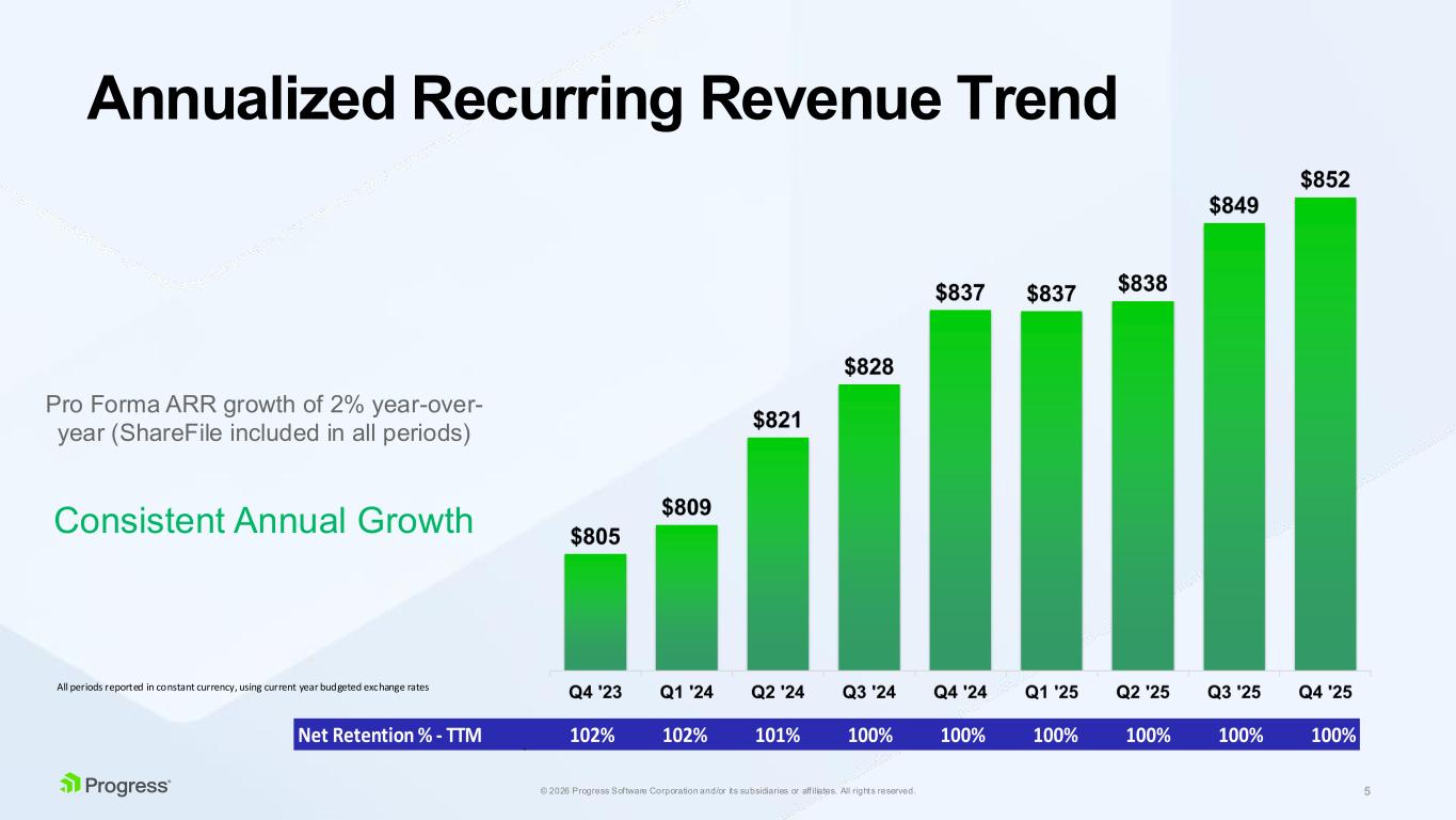 "2025 was our strongest year ever for Progress as we continue to execute on our long-term Total Growth strategy to invest and innovate, acquire and integrate, and drive customer success," said Yogesh Gupta, CEO at Progress Software. "Our results for the year were driven by the completion of our ShareFile integration along with the strong performance across our overall product portfolio, increasingly propelled by our customers' AI projects. Net Retention of 100% demonstrates the relevance of our products in an AI-driven world for businesses of all sizes."