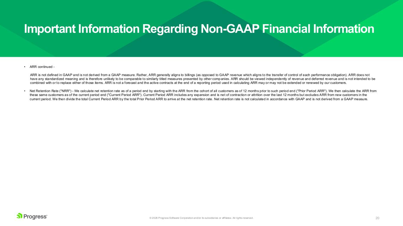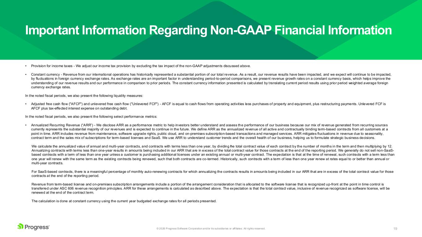 See Important Information Regarding Non-GAAP Financial Measures, Liquidity Measures, and Select Performance Metrics and a reconciliation of non-GAAP adjustments to Progress' GAAP financial results at the end of this press release.
