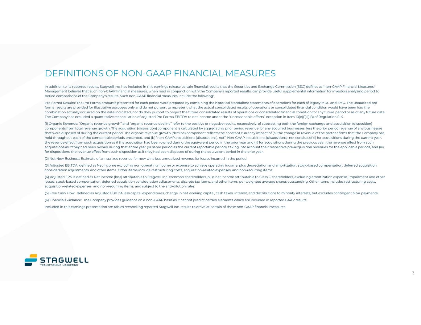 この決算発表には、これらの非GAAP財務指標の一部を算出するために、Stagwell Inc.の報告結果を調整した表が含まれています。