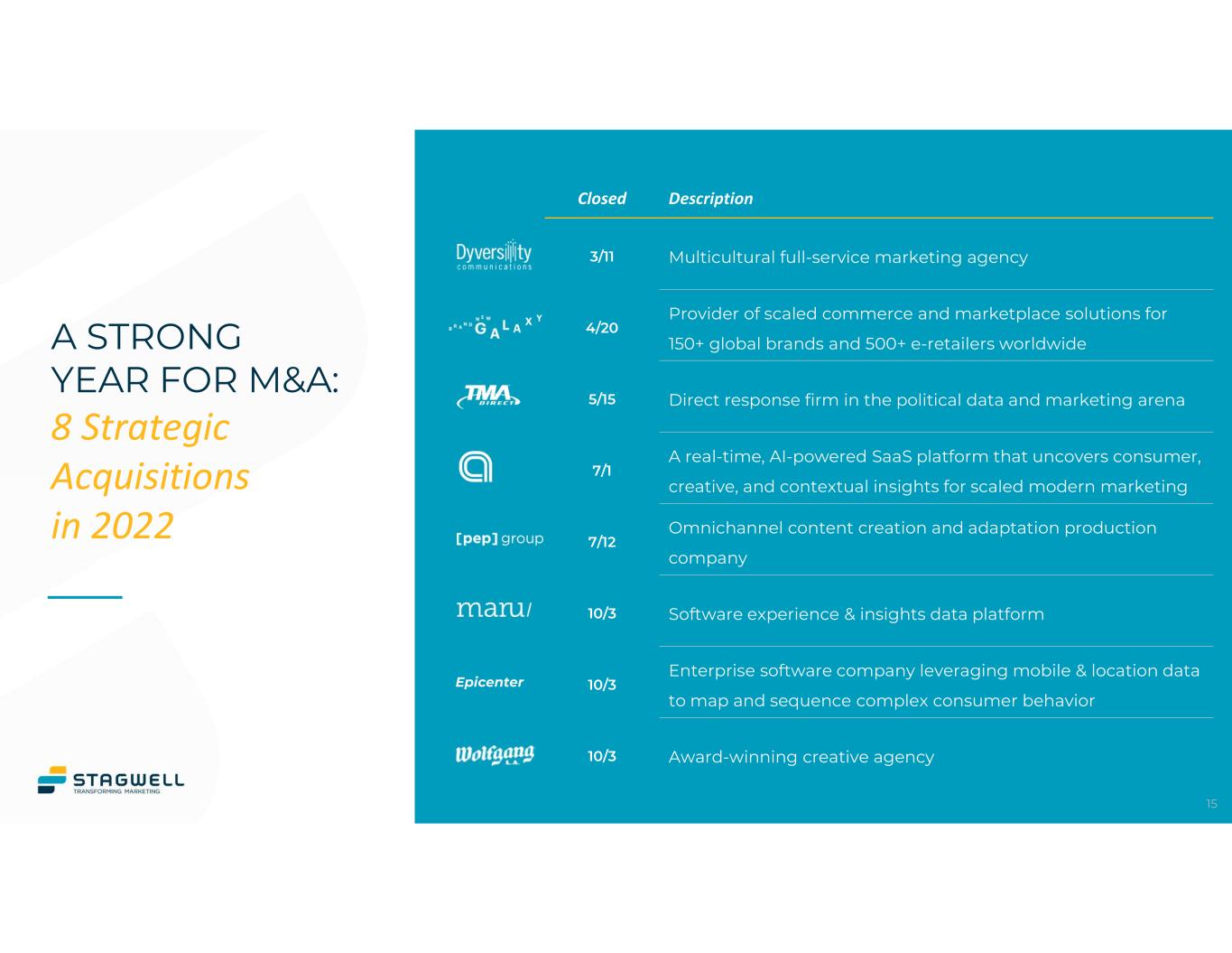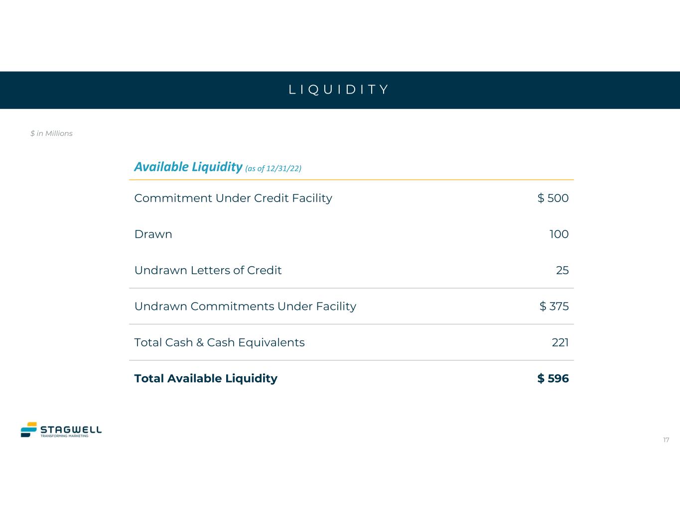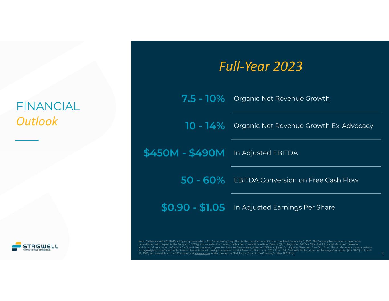 "スタグウェルは、業界をリードする2桁成長、強力なマージン拡大、記録的なフリーキャッシュフロー、記録的な1株当たり利益、目標を大幅に下回る純負債率で2022年を締めくくりました。スタグウェルの会長兼CEOであるマーク・ペンは、「我々はマーケティングを変革すると約束し、ゲームを変えるAIとAR駆動の製品を構築し、我々のビジネスと業界の両方を成長させ続け、変革しています。"2023年もアドボカシー事業以外で2桁成長を遂げ、勢いを持続していきたいと考えています。"