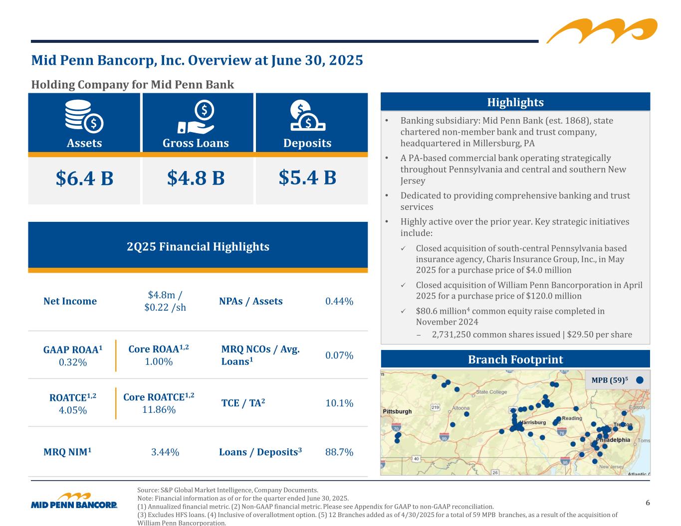 1 DRAFT 04.07.2021 MID PENN BANCORP, INC. Investor Presentation July 2025