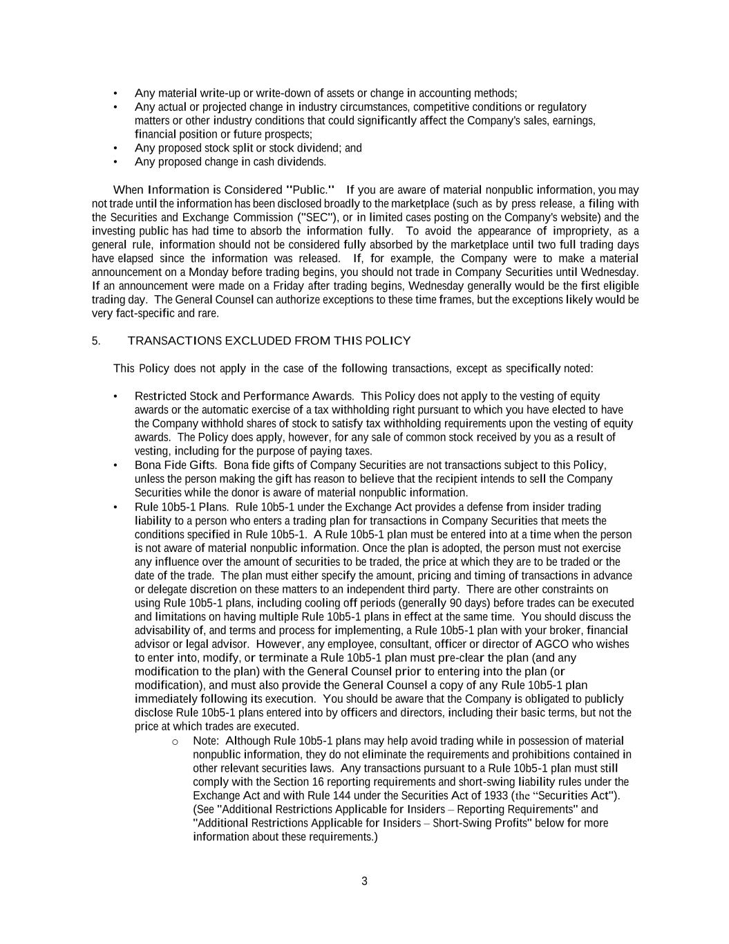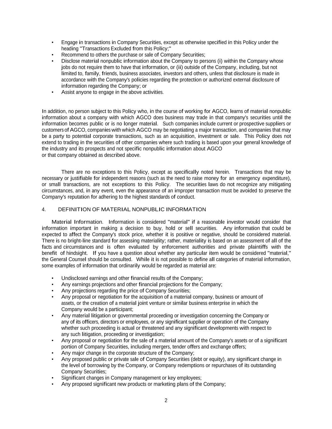 On July 25, 2024, the Company entered into a Stock and Asset Purchase Agreement to sell the majority of its G&P business, which includes the GSI®, Automated Production® (AP), Cumberland®, Cimbria® and Tecno® brands for a purchase price of $700.0 million, subject to customary working capital and other adjustments. On November 1, 2024, the Company completed the sale of the Company’s G&P business to A-AG Holdco Limited, an affiliate of American Industrial Partners. The divestiture of the G&P business aligns with AGCO's efforts to better position itself for high margin growth and allows for AGCO to better streamline and focus on its portfolio of agricultural machinery and precision ag technology products. Refer to Note 3 of our Consolidated Financial Statements contained in Item 8, “Financial Statements and Supplementary Data,” for further information.