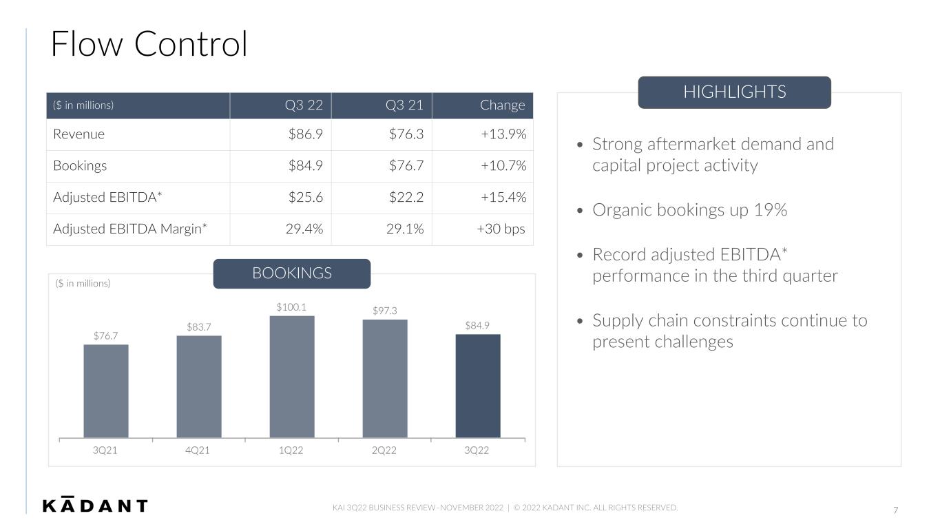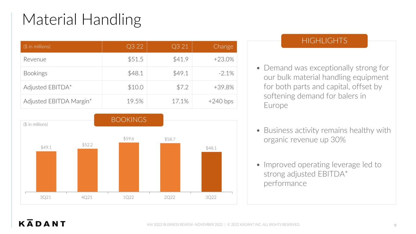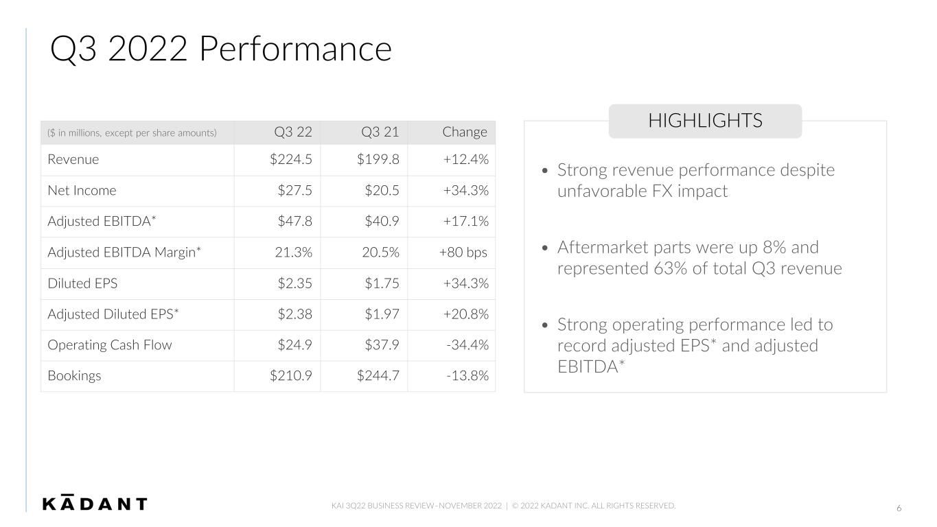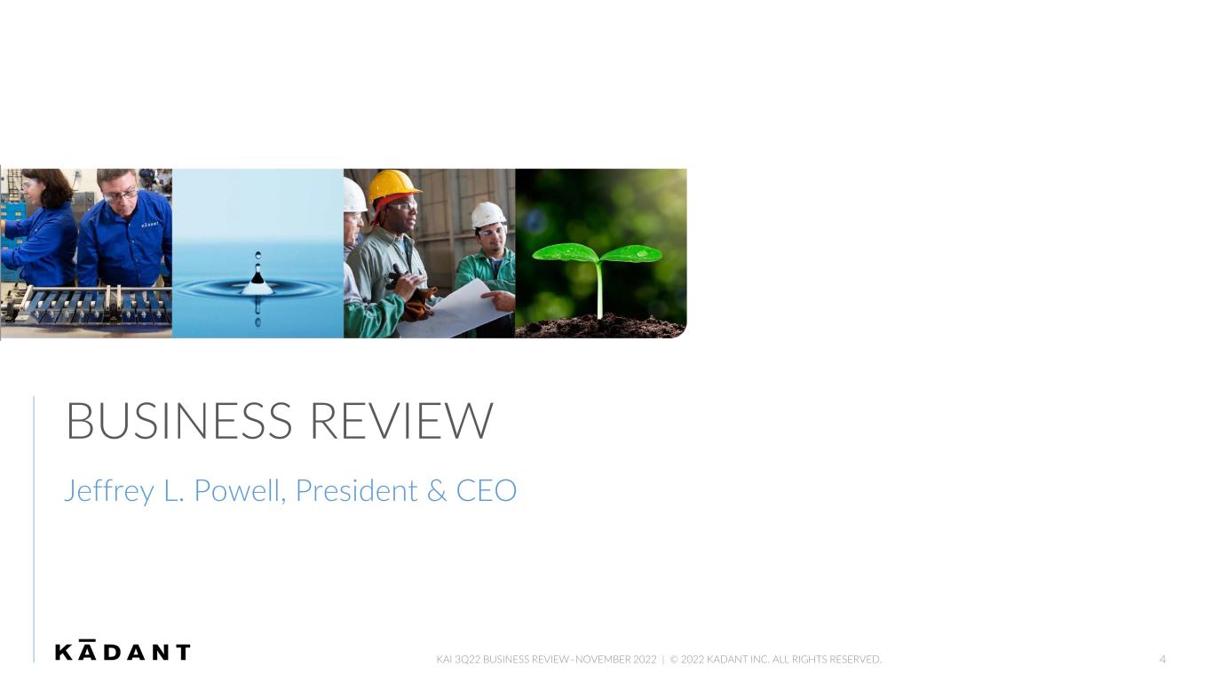 マサチューセッツ州ウェストフォード、2022年11月1日 - カダント・インク(NYSE:KAI)は、2022年10月1日に終了した第3四半期の決算を発表しました。