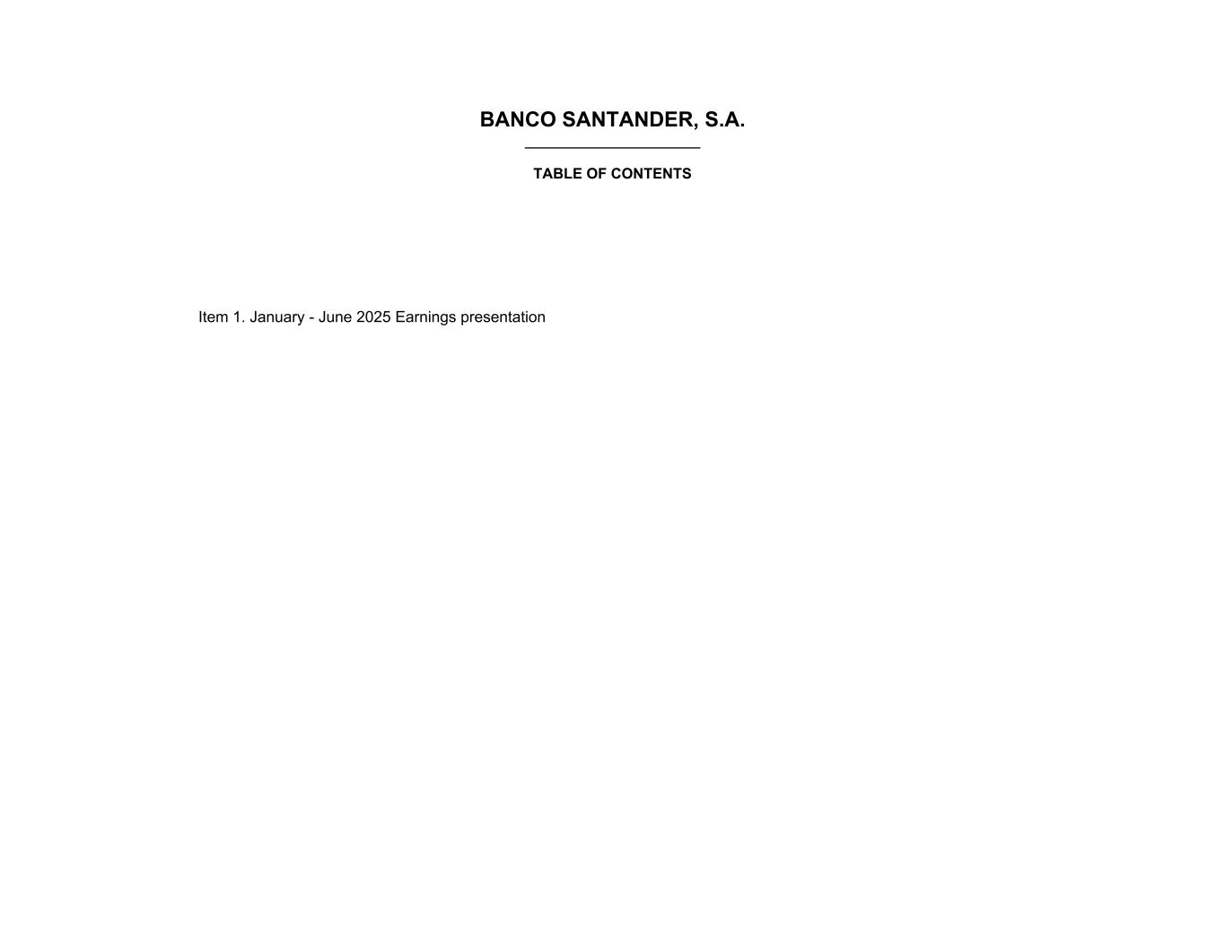 BANCO SANTANDER, S.A. ________________________ TABLE OF CONTENTS Item 1. January - June 2025 Earnings presentation