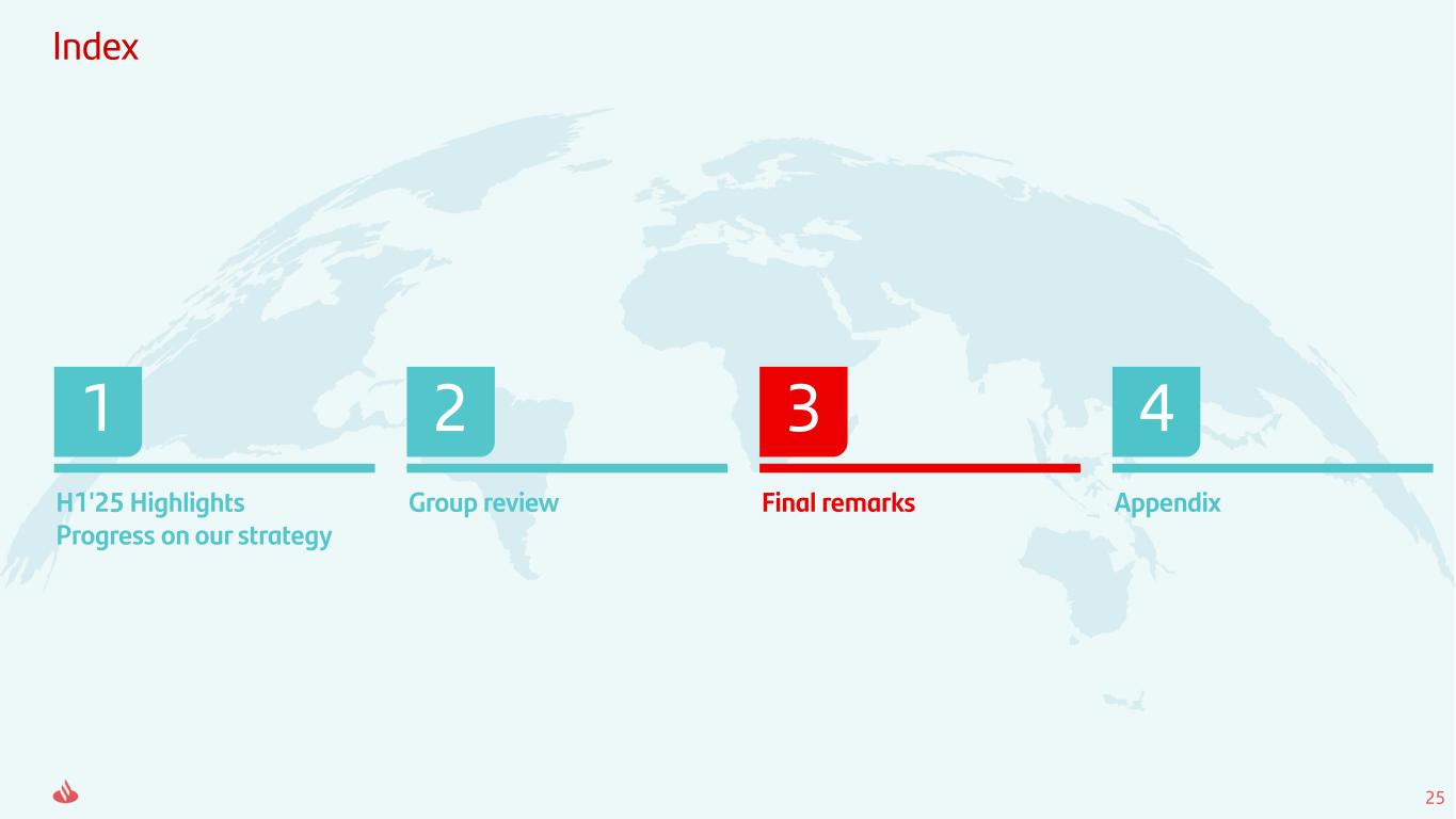25 Index H1'25 Highlights Progress on our strategy 1 Group review 2 Final remarks 3 Appendix 4