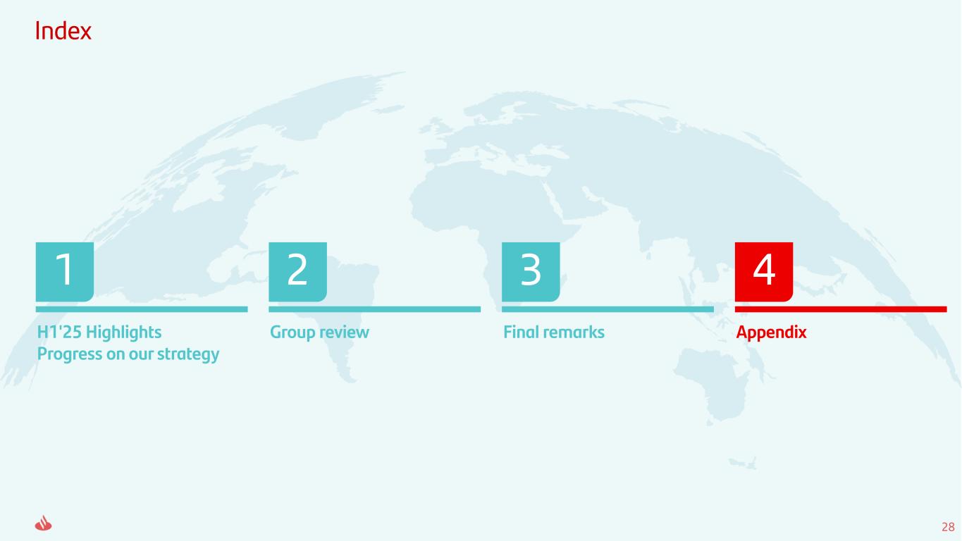 28 Index H1'25 Highlights Progress on our strategy 1 Group review 2 Final remarks 3 Appendix 4