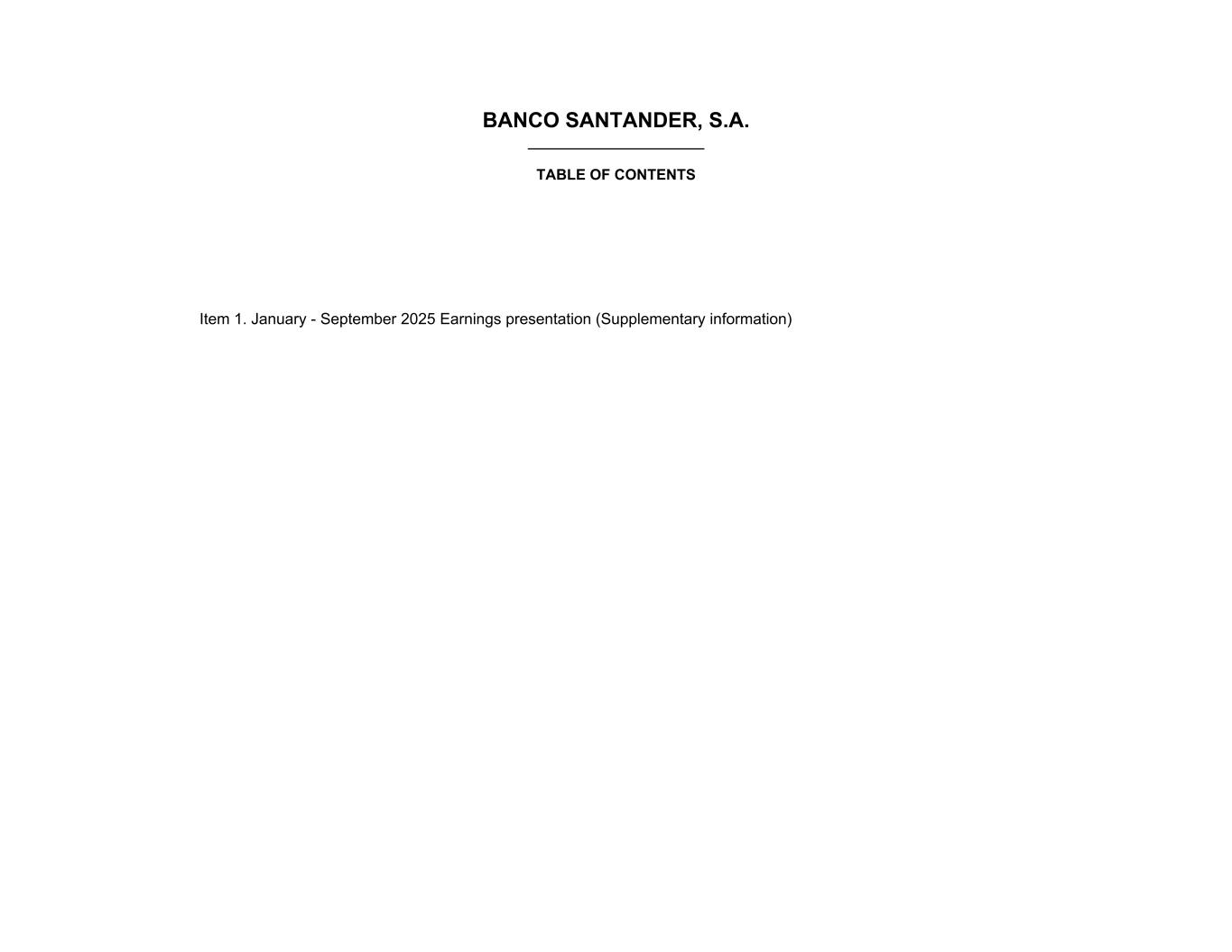 BANCO SANTANDER, S.A. ________________________ TABLE OF CONTENTS Item 1. January - September 2025 Earnings presentation (Supplementary information)