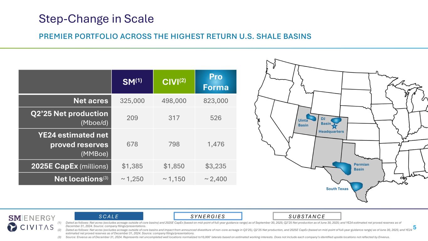 •Sustainable Quarterly Fixed Dividend Maintained at $0.20/Share. The combined company will deliver sustainable dividends, a program that SM Energy has grown on a per share basis by 33% since the program was introduced in 2022.