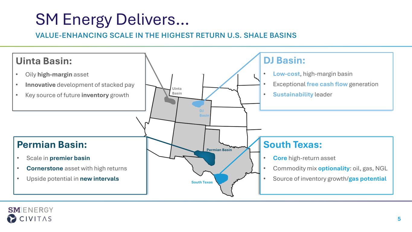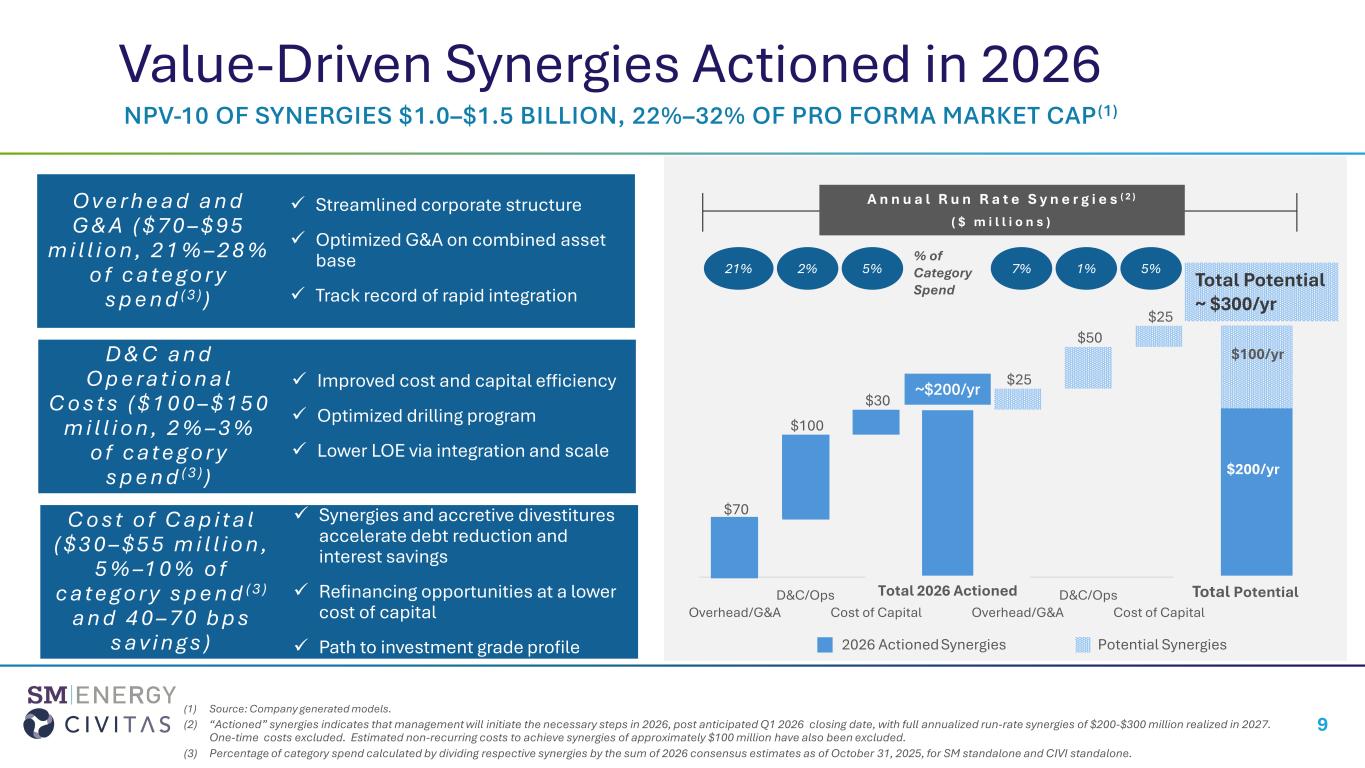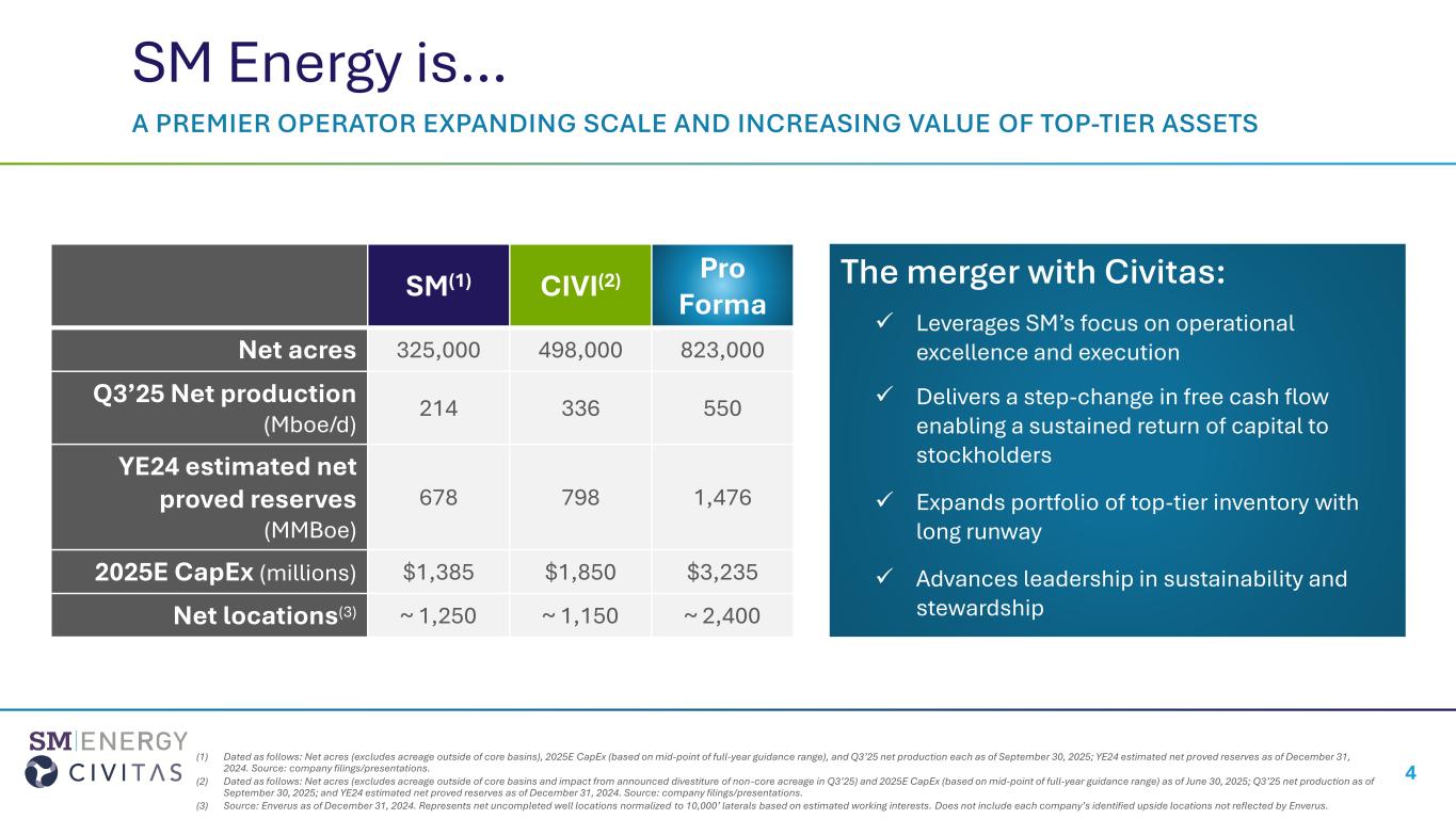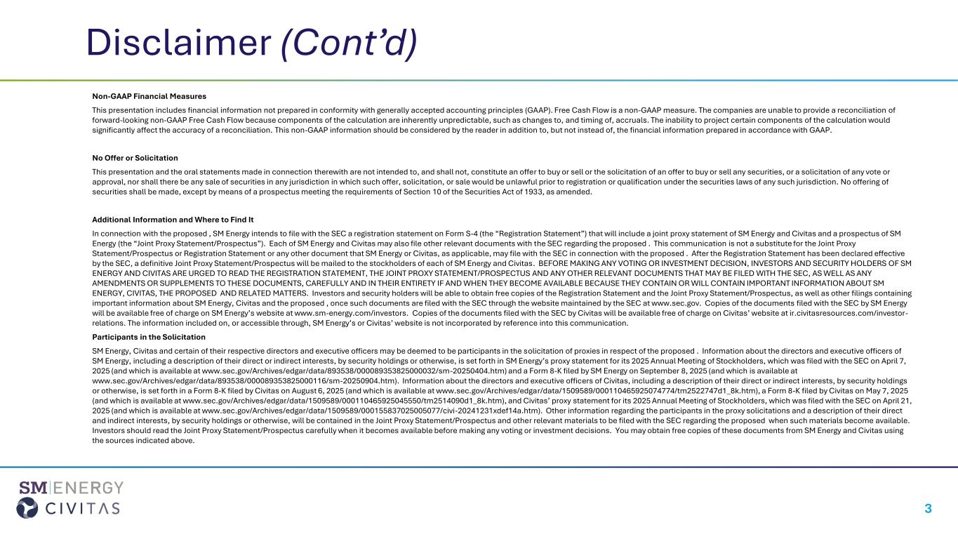 •Favorable Rating Agency Response. S&P Global Ratings and Fitch Ratings have placed SM Energy on CreditWatch Positive and Rating Watch Positive, respectively, reflecting strong confidence in the post-merger outlook and strengthened credit profile supported by the pro-forma company’s enhanced scale and diversification.