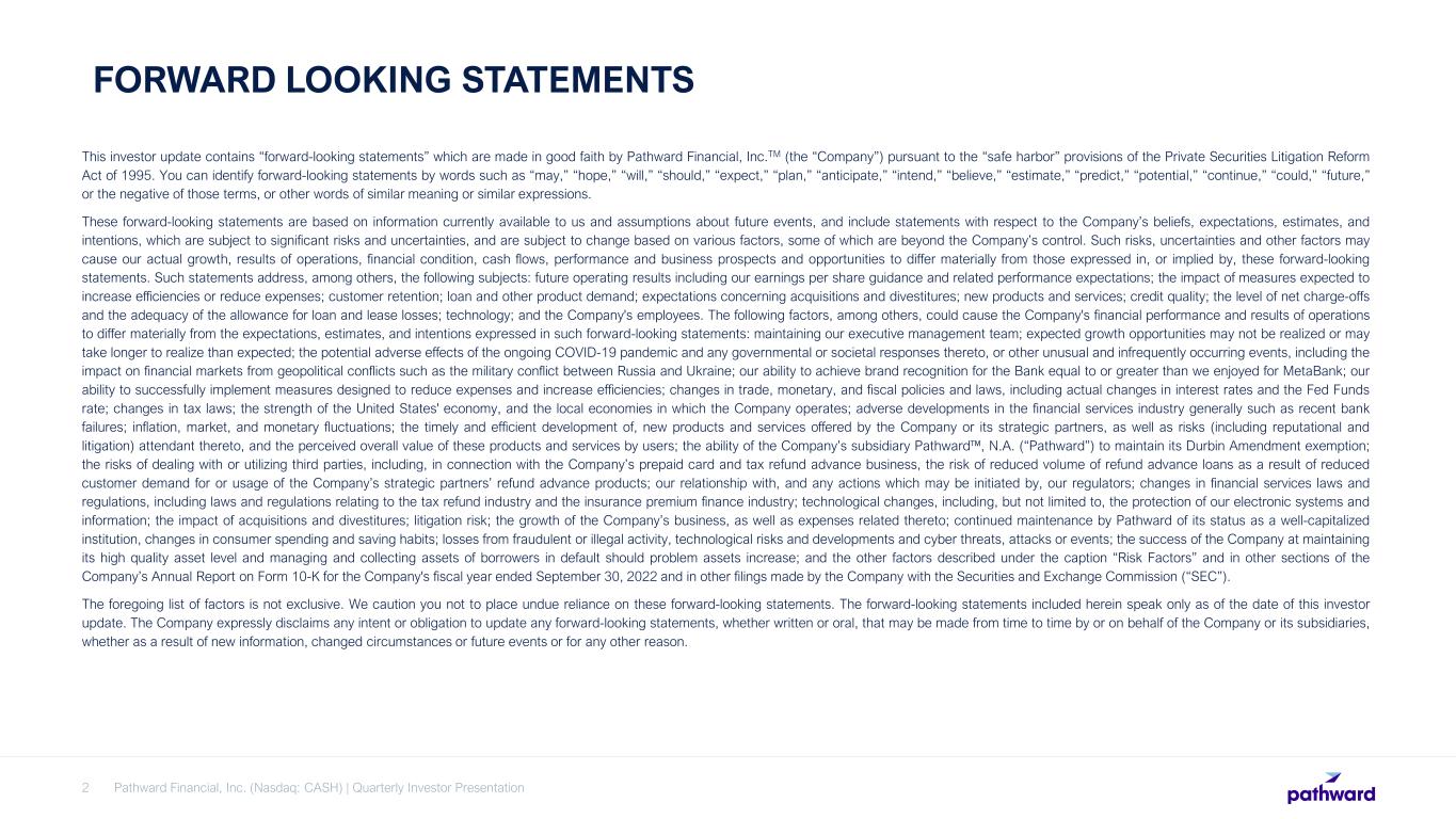 •On April 5, 2023, Pathward®, N.A. announced it became Certified™ by Great Place to Work® for the first time. Great Place to Work holds itself out as the global authority on workplace culture, employee experience, and the leadership behaviors proven to deliver market-leading revenue, employee retention and increased innovation.