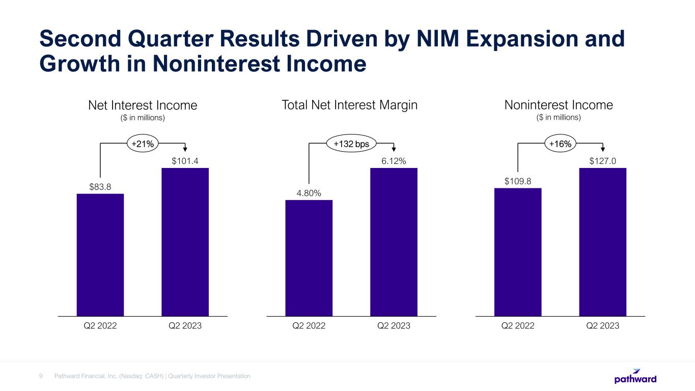 •Total revenue for the second quarter was $228.4 million, an increase of $34.9 million, or 18%, compared to the same quarter in fiscal 2022, driven by an increase in both noninterest income and net interest income.