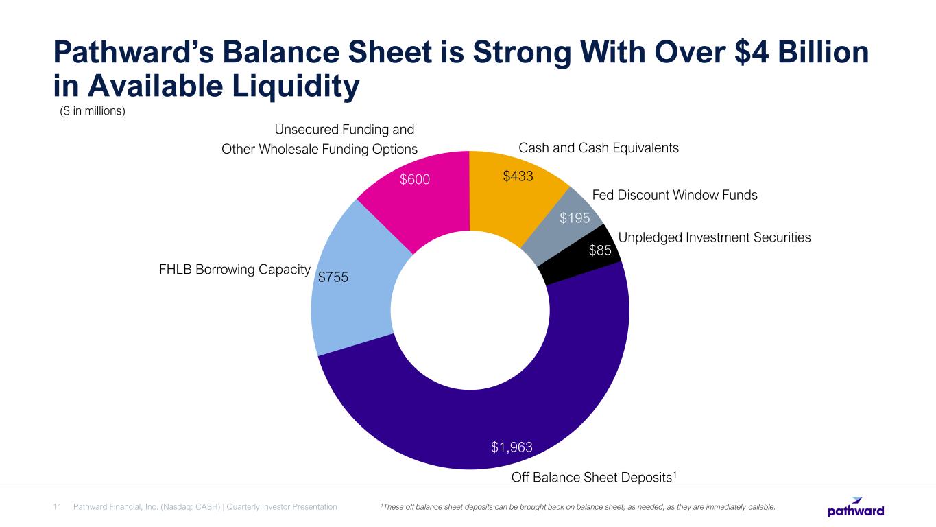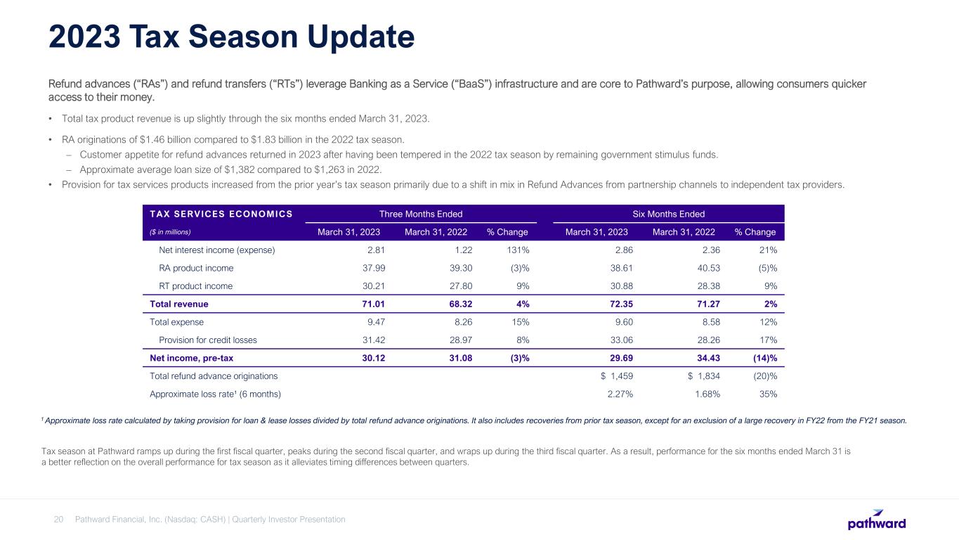 For the 2023 tax season, Pathward originated $1.46 billion in refund advance loans compared to $1.83 billion during the 2022 tax season. When excluding the two partners the Company did not renew after the 2022 tax season, loan originations increased $116.2 million this tax season compared to the previous year.