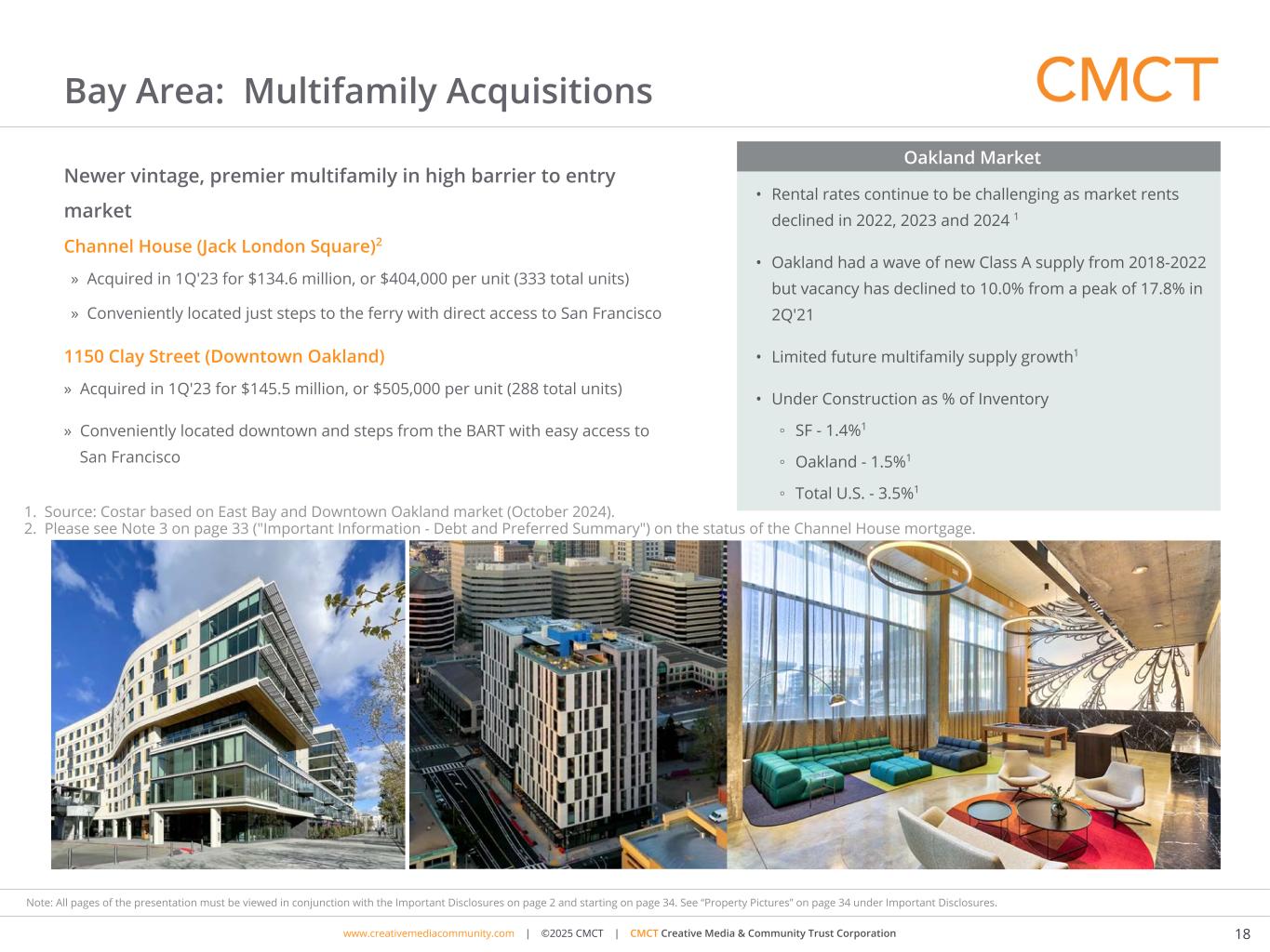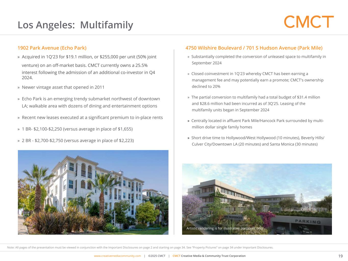 「クリエイティブ・メディア・アンド・コミュニティ・トラスト・コーポレーションの最高経営責任者(CEO)であるデビッド・トンプソンは、「私たちは、一流集合住宅資産への注力を加速させ、バランスシートを強化し、流動性を向上させるという、以前に発表した計画を引き続き大きく前進させています。
