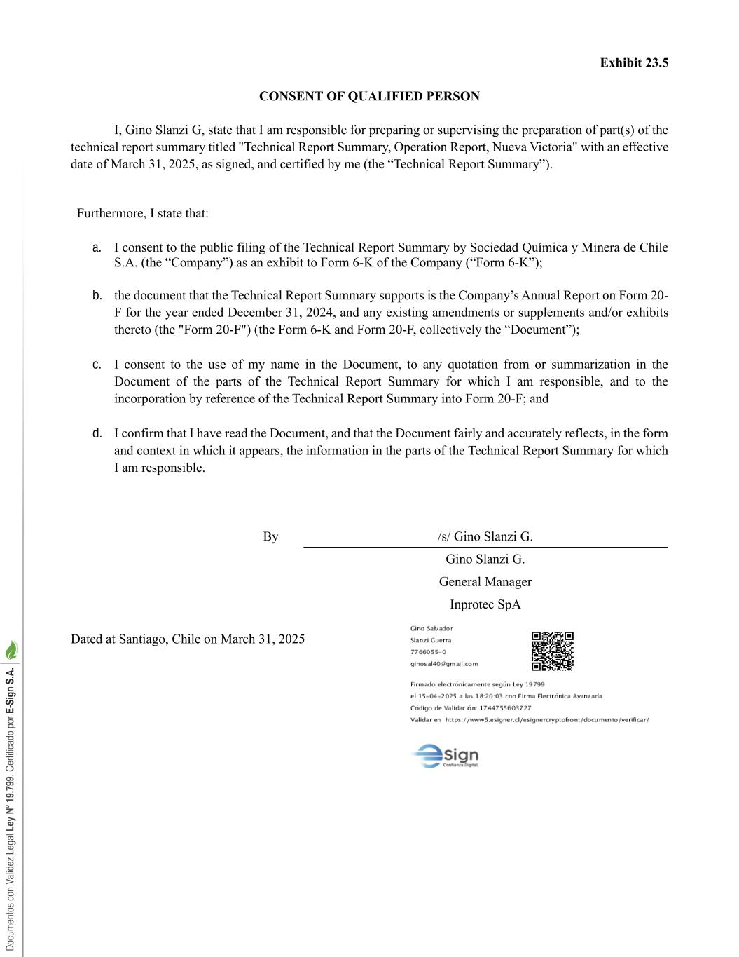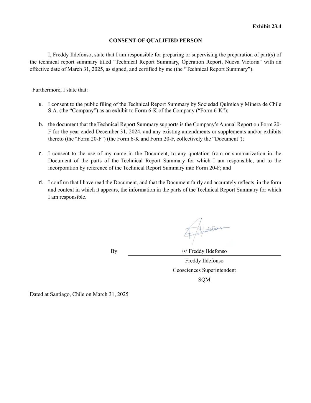 This report provides the methodology, procedures and classification used to obtain SQM’s Nitrate an Iodine Mineral Resources and Mineral Reserves, at the Nueva Victoria Site. The Mineral Resources and Reserves that are delivered correspond to the update as of December 31, 2024.