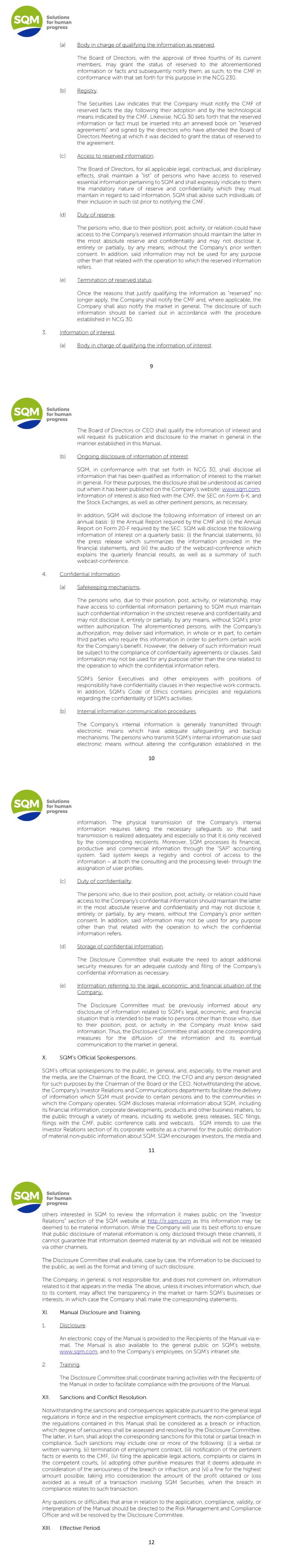 1.Purpose. The purpose of the Sociedad Química y Minera de Chile S.A. Incentive-Based Compensation Recovery Policy (the “Policy”) is to set forth the circumstances under which Sociedad Química y Minera de Chile S.A. (the “Company”) will recover Erroneously Awarded Compensation (as defined below) received by a current or former Executive Officer (as defined below) of the Company.
