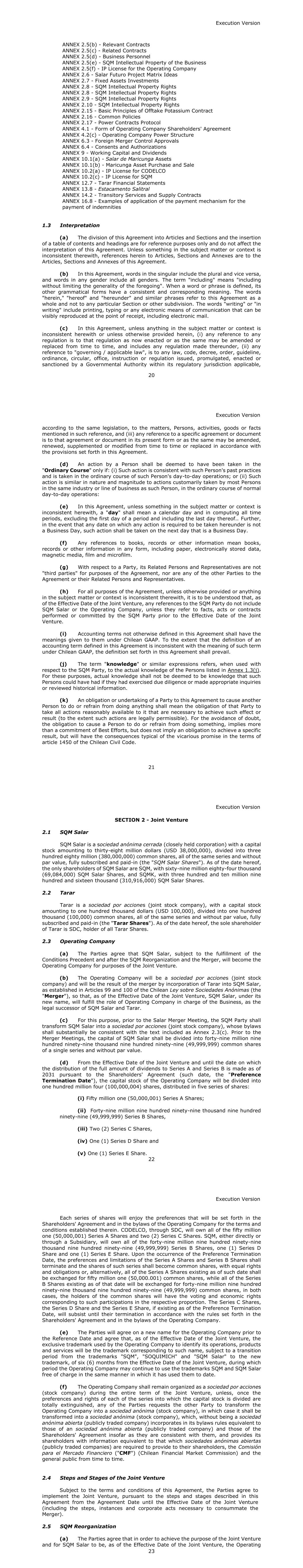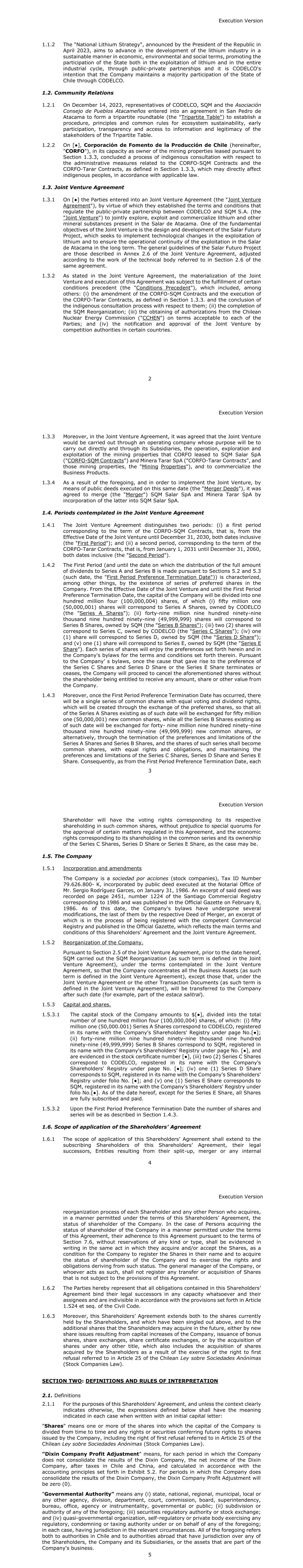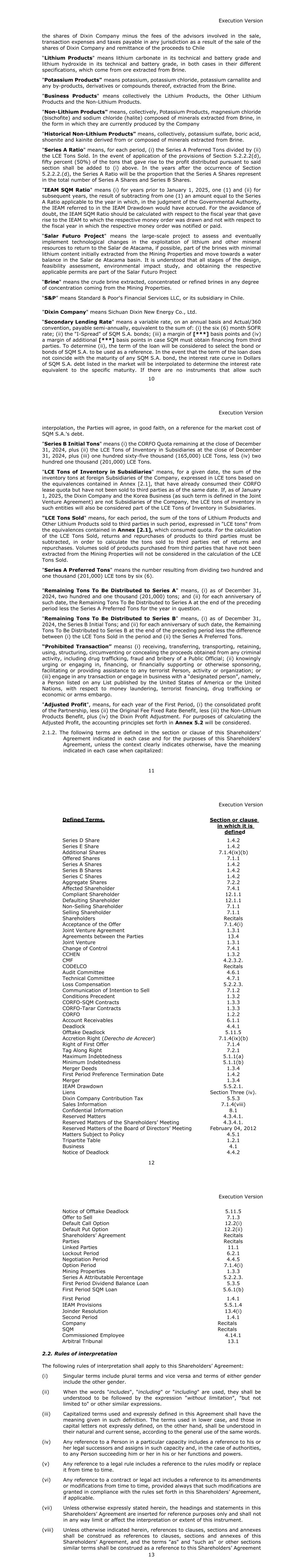 In this Annual Report on Form 20-F, for the year ended December 31, 2024 (this “Form 20-F”), except as otherwise provided or unless the context requires otherwise, all references to “we,” “us,” “Company” or “SQM” are to Sociedad Química y Minera de Chile S.A., an open stock corporation (sociedad anónima abierta) organized under the laws of the Republic of Chile, and its consolidated subsidiaries.