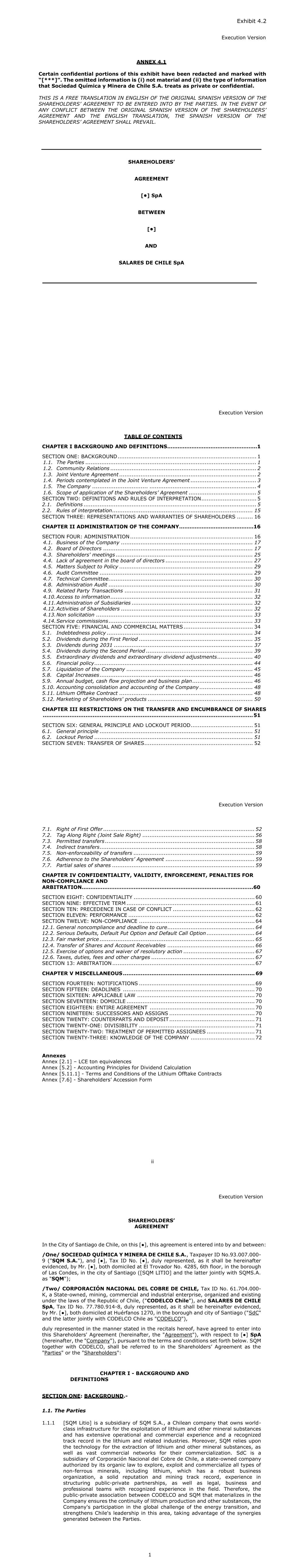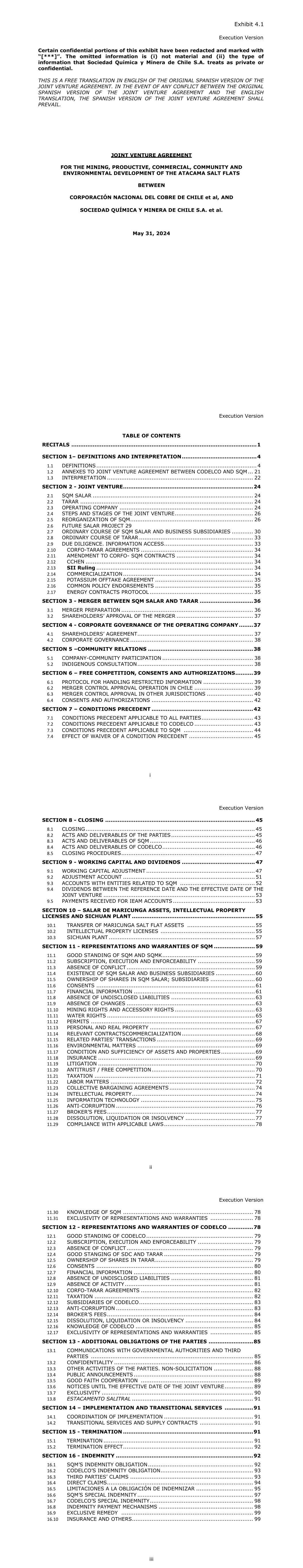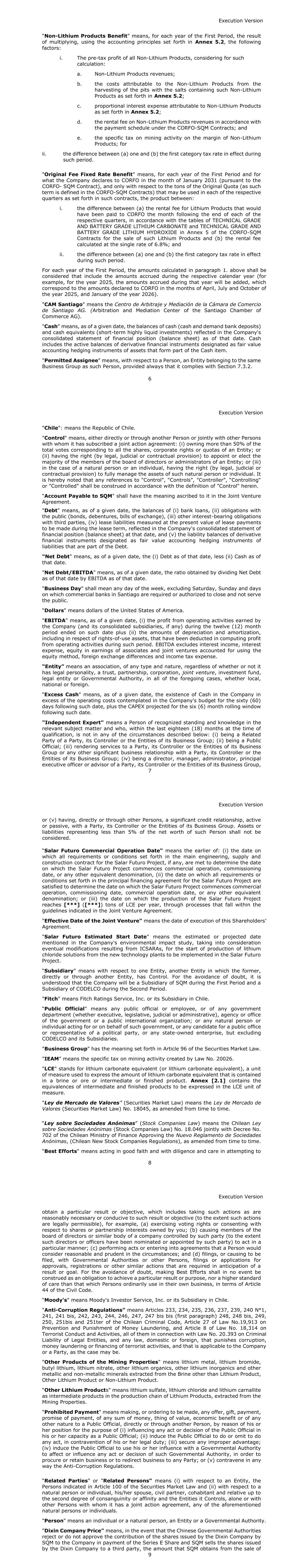 In this Annual Report on Form 20-F, for the year ended December 31, 2024 (this “Form 20-F”), except as otherwise provided or unless the context requires otherwise, all references to “we,” “us,” “Company” or “SQM” are to Sociedad Química y Minera de Chile S.A., an open stock corporation (sociedad anónima abierta) organized under the laws of the Republic of Chile, and its consolidated subsidiaries.