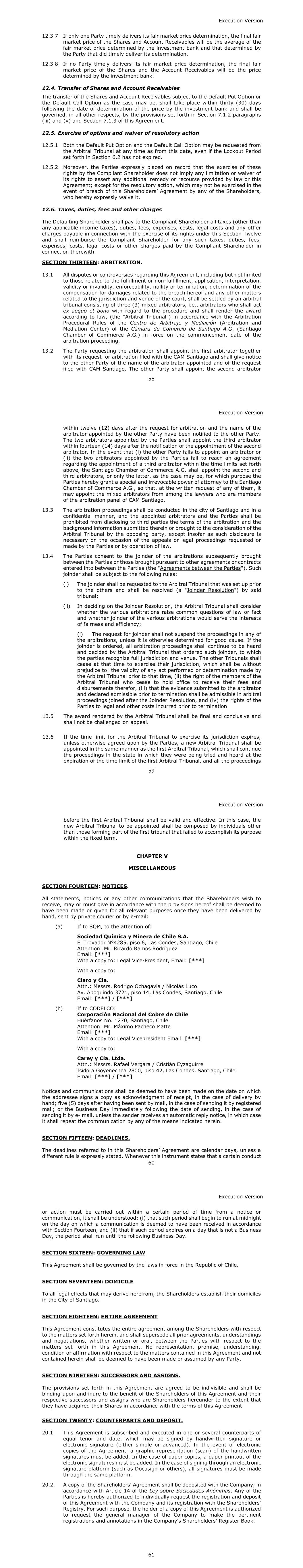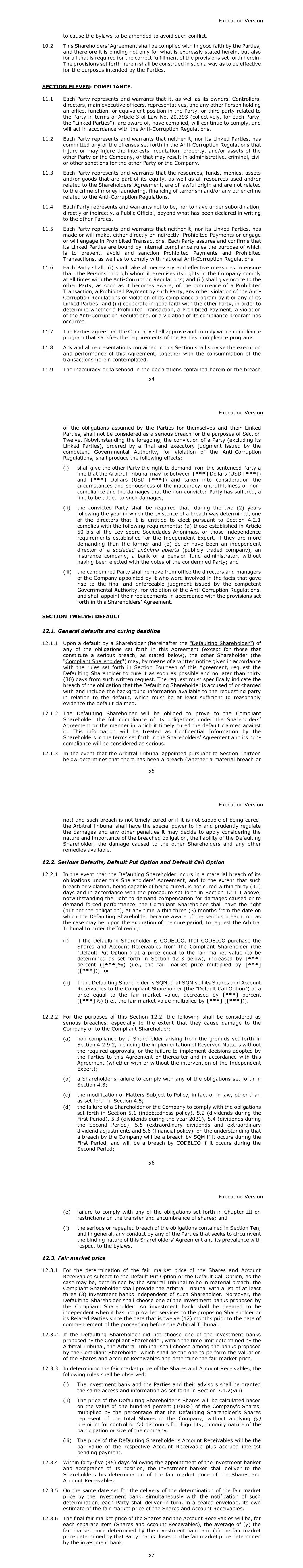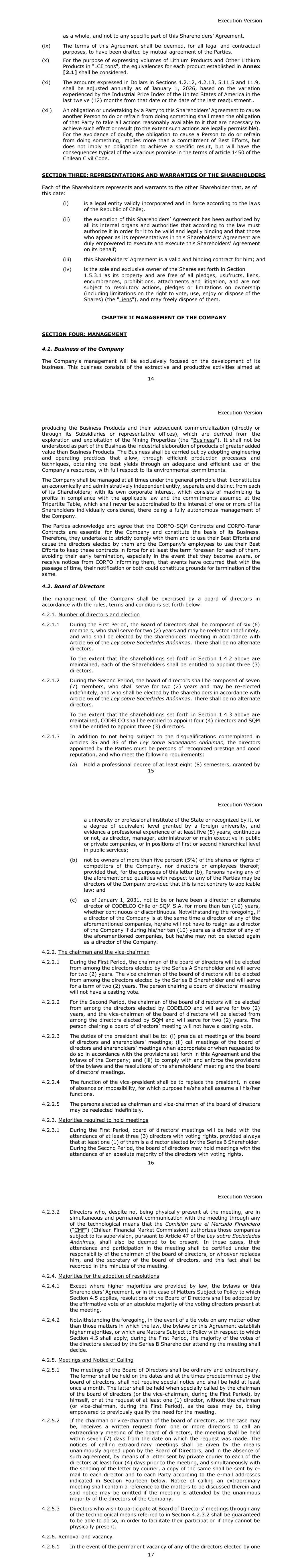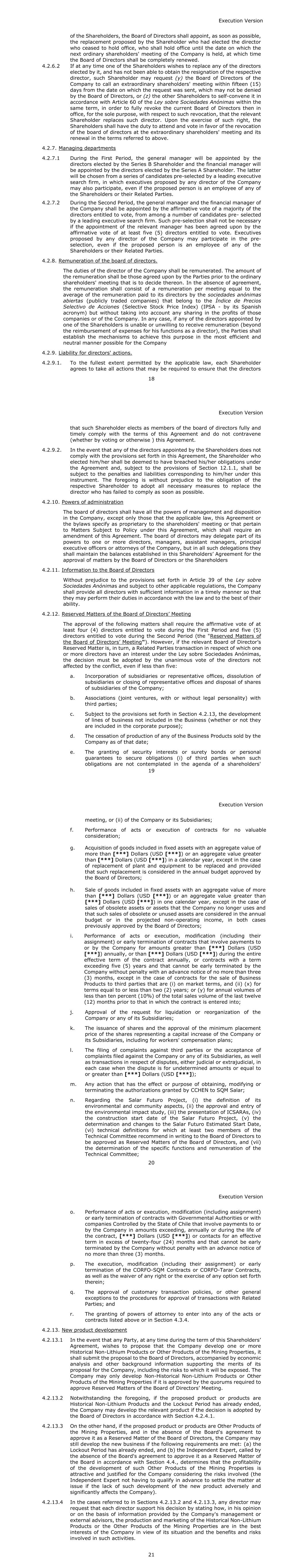 (b)recovery would violate the law of the Republic of Chile that was adopted prior to November 28, 2022, such date being the date on which the SEC approved Rule 10D-1 under the U.S. Securities Exchange Act of 1934, as amended (the “Exchange Act”); provided that before concluding that it would be impracticable to recover any amount of Erroneously Awarded Compensation based on violation of the Company’s home country law, the Company will obtain an opinion of country counsel, acceptable to the NYSE, that recovery would result in such a violation and provide such opinion to the NYSE; or
