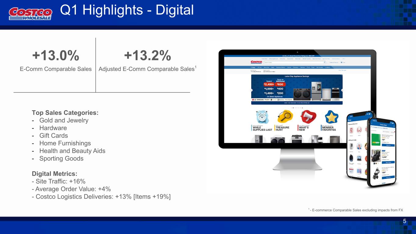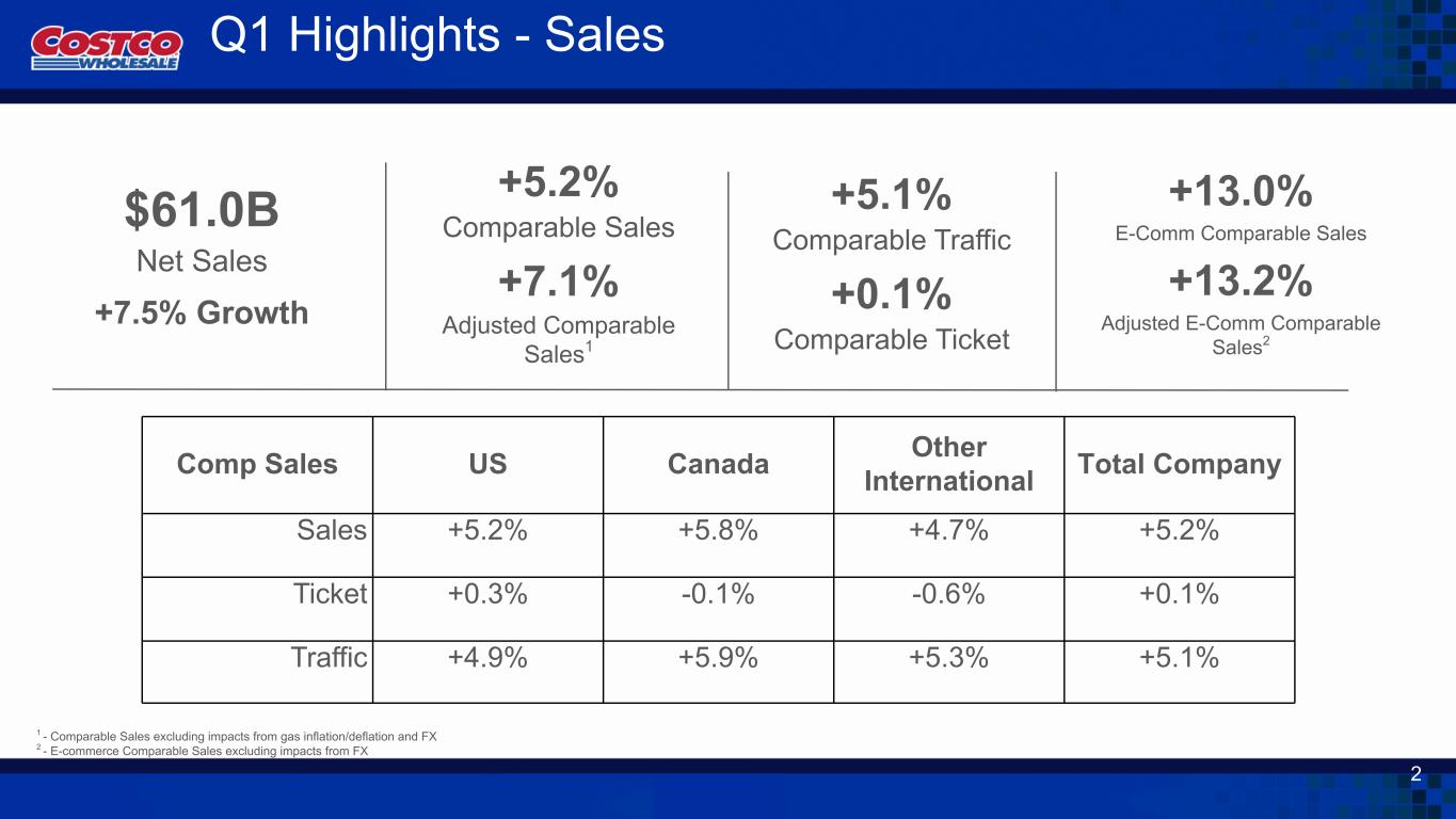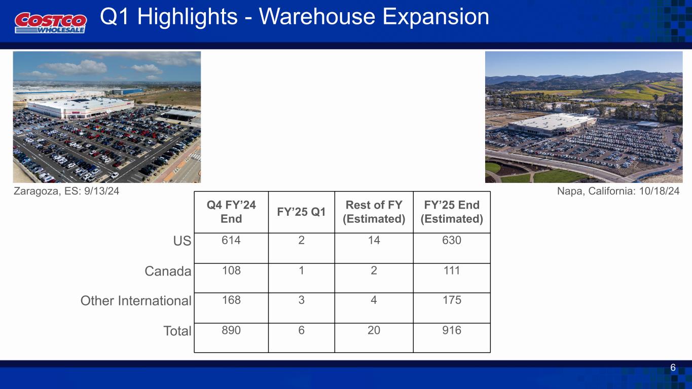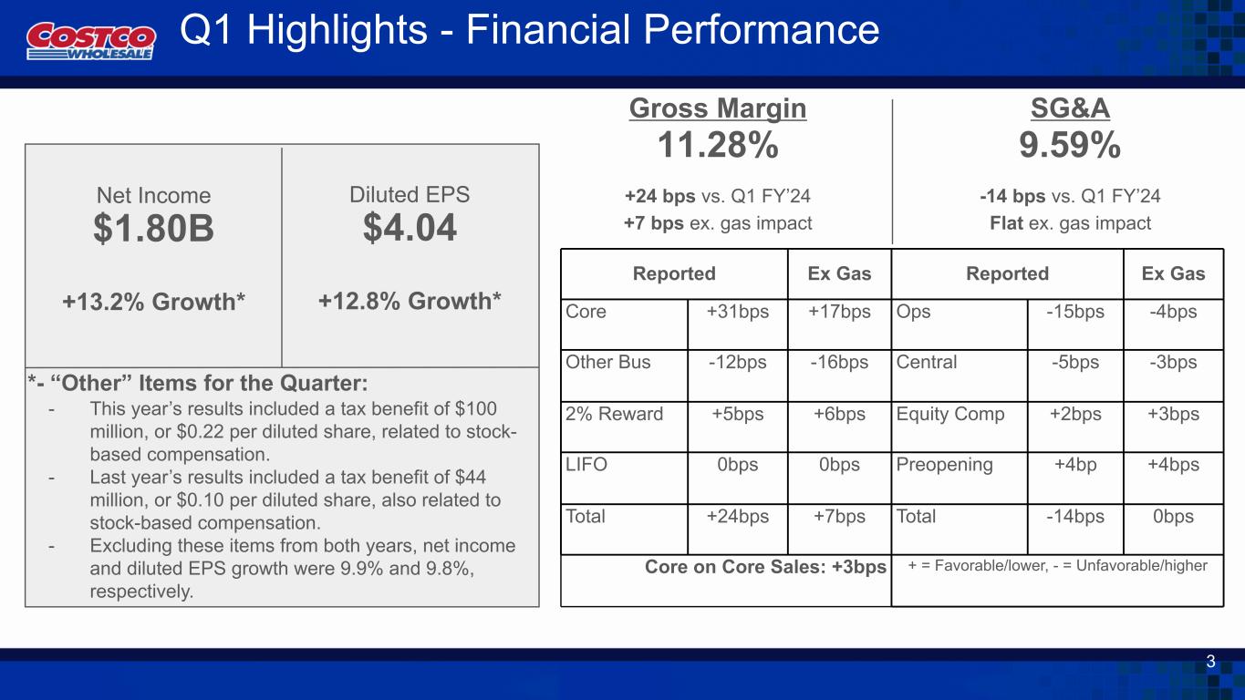 ワシントン州イサクア、2024年12月12日 - コストコホールセールコーポレーション(Nasdaq: COST)は本日、2025会計年度第1四半期(12週間)(11月24日締め)の業績を発表しました。