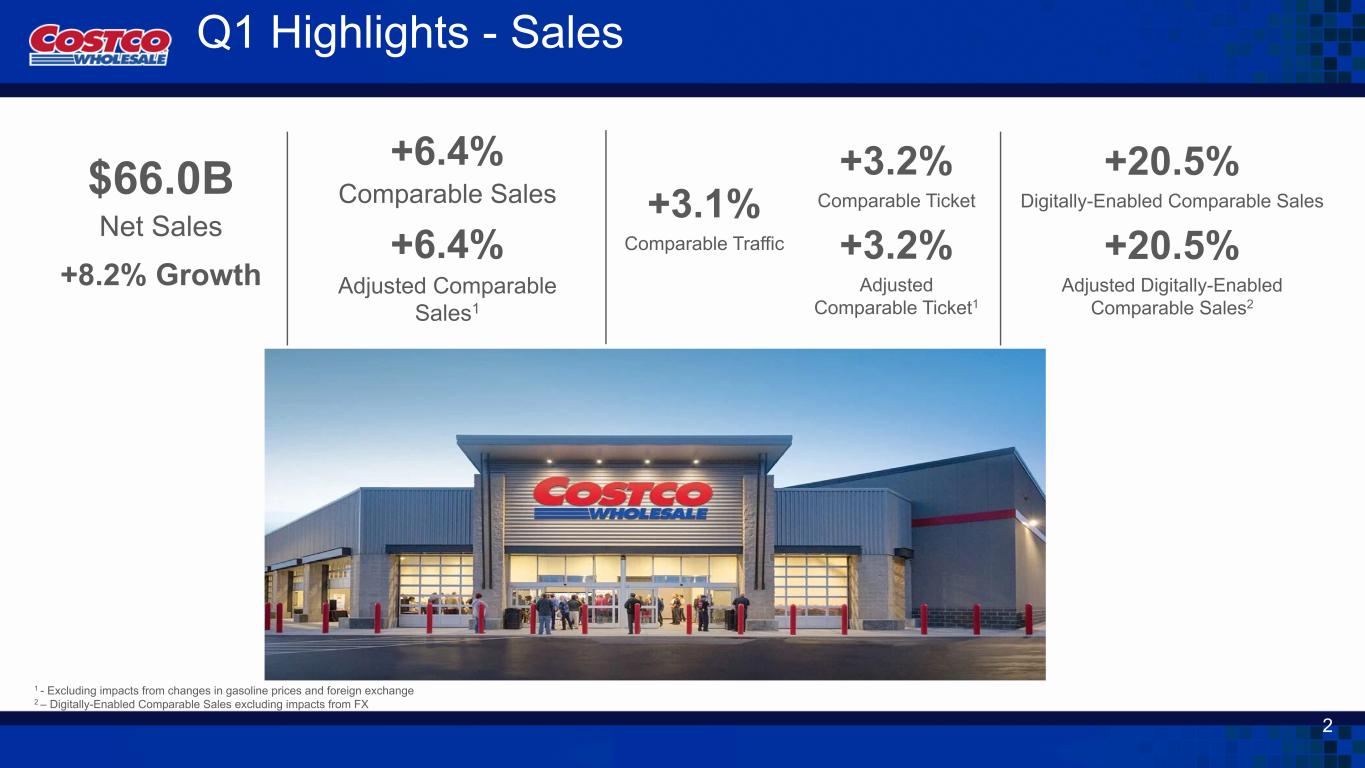 本書に含まれる一部の記述は、1995年米国私募証券訴訟改革法の定義における将来予想に関する記述に該当します。これらの目的上、将来予想に関する記述とは、当社が将来発生する可能性があると予想または予測する活動、事象、状況、または展開に関する記述を指します。将来予想に関する記述は、「予想する」、「信じる」、「継続する」、「可能性がある」、「推定する」、「期待する」、「意図する」、「可能性が高い」、「かもしれない」、「計画する」、「可能性がある」、「予測する」、「プロジェクトする」、「求める」、「はずである」、「目標する」、「する予定である」、「だろう」、または類似の表現およびそれらの否定語を含むため、特定できる場合があります。このような将来の見通しに関する記述には、リスクや不確実性が含まれており、実際の出来事、結果、または業績は、このような記述によって示されたものとは大きく異なる可能性があります。こうしたリスクや不確実性には、為替レート、インフレまたはデフレ、競争や規制の影響、金融市場の不確実性、消費者および中小企業の消費パターンおよび債務水準、会員または事業情報のセキュリティまたはプライバシーの侵害、不動産の取得、開発、所有または使用に影響を与える状況、設備投資、業者の行動など、国内外の経済状況が含まれますが、これらに限定されるものではありません、従業員に関連するコストの上昇(一般的に医療費および賃金を含む)、労働力の中断、エネルギーおよび特定の商品、地政学的状況(関税を含む)、財務報告に対する効果的な内部統制を維持する能力、環境および社会的事項に関する規制およびその他の影響、公衆衛生関連要因、および証券取引委員会に提出された当社の公式声明および報告書で随時特定されるその他のリスク。将来の見通しに関する記述は、それらが作成された時点のものであり、当社は、法律で義務付けられている場合を除き、これらの記述を更新する義務を負いません。ガソリン価格および外国為替の変動による影響を除いた比較可能売上高および比較可能売上高は、補足的な情報を意図したものであり、米国会計基準に準拠して表示された売上高の代わりとなるものではありません。