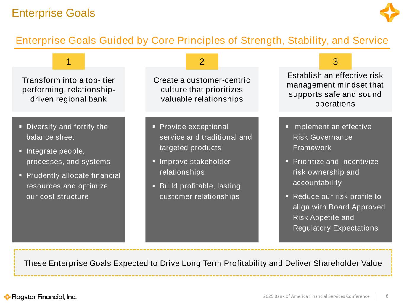 82025 Bank of America Financial Services Conference Enterprise Goals Guided by Core Principles of Strength, Stability, and Service Enterprise Goals ▪ Provide exceptional service and traditional and targeted products ▪ Improve stakeholder relationships ▪ Build profitable, lasting customer relationships Create a customer-centric culture that prioritizes valuable relationships ▪ Implement an effective Risk Governance Framework ▪ Prioritize and incentivize risk ownership and accountability ▪ Reduce our risk profile to align with Board Approved Risk Appetite and Regulatory Expectations Establish an effective risk management mindset that supports safe and sound operations ▪ Diversify and fortify the balance sheet ▪ Integrate people, processes, and systems ▪ Prudently allocate financial resources and optimize our cost structure Transform into a top- tier performing, relationship- driven regional bank 1 2 3 These Enterprise Goals Expected to Drive Long Term Profitability and Deliver Shareholder Value