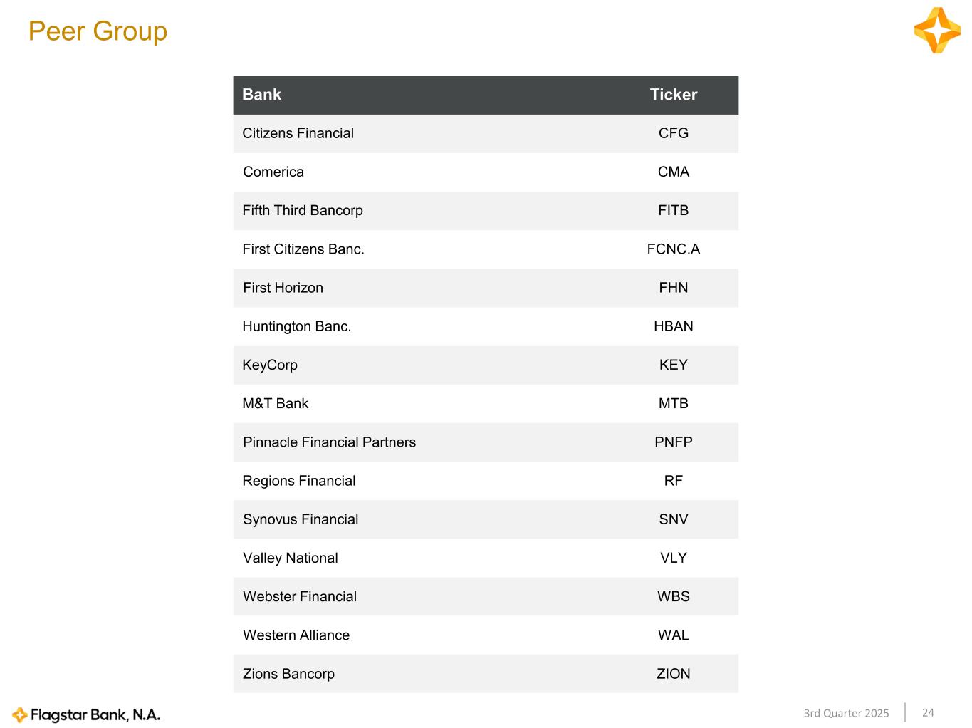 243rd Quarter 2025 Bank Ticker Citizens Financial CFG Comerica CMA Fifth Third Bancorp FITB First Citizens Banc. FCNC.A First Horizon FHN Huntington Banc. HBAN KeyCorp KEY M&T Bank MTB Pinnacle Financial Partners PNFP Regions Financial RF Synovus Financial SNV Valley National VLY Webster Financial WBS Western Alliance WAL Zions Bancorp ZION Peer Group
