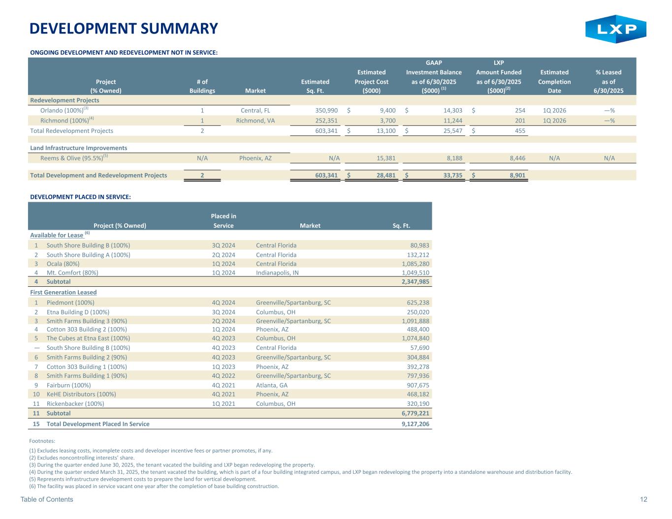 3.2025年6月30日に終了した四半期中に、テナントは建物を明け渡し、LXPは再開発を開始した。