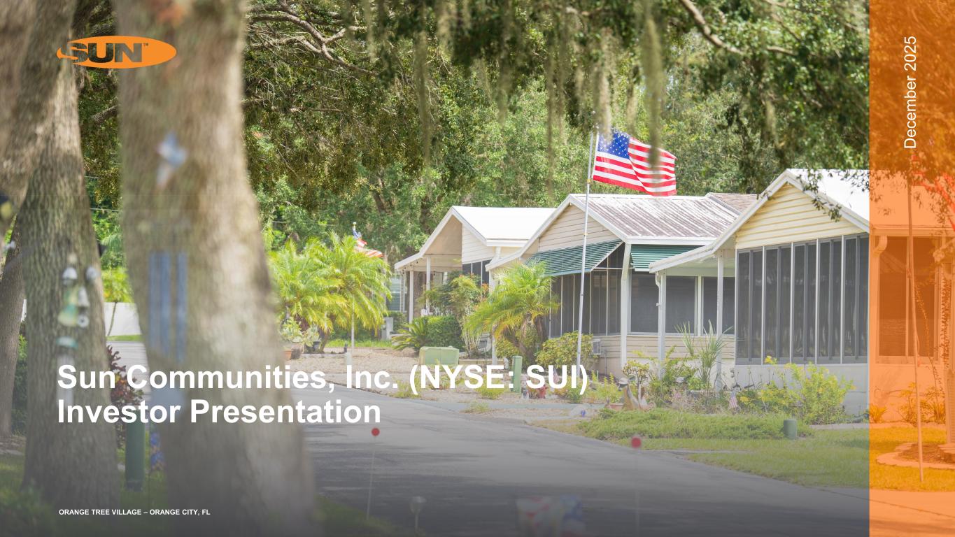 D ec em be r 2 02 5 ORANGE TREE VILLAGE – ORANGE CITY, FL Sun Communities, Inc. (NYSE: SUI) Investor Presentation