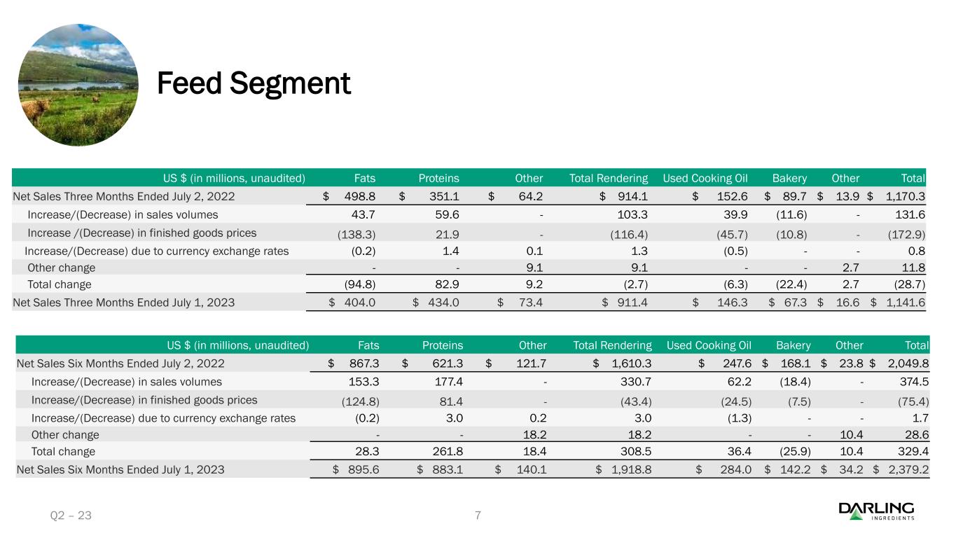 ダーリング・イングレディエンツ社2023年第2四半期決算を発表