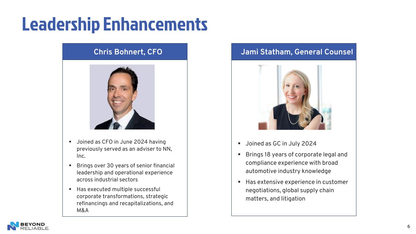 Chris Bohnert, Senior Vice President and Chief Financial Officer, commented, “NN continued to make significant progress on its transformation goals in the quarter and we are maintaining our full year 2024 guidance ranges as market fundamentals and our improved operating performance have been in line with our previous expectations. Additionally, optimizing NN’s capital structure and the proactive strategic re-financing of our term loan remains a top priority for our team in the near-term and will be a key next step in our transformational strategy.”
