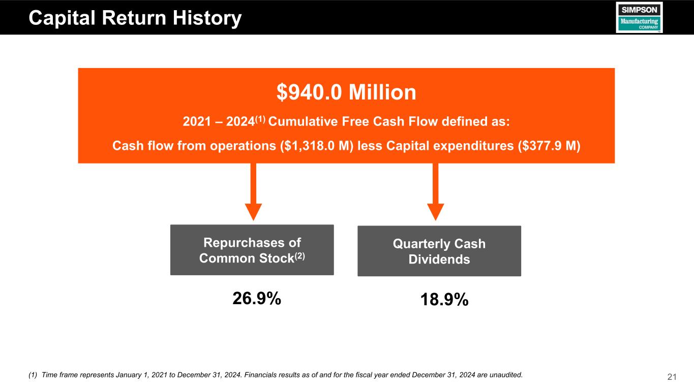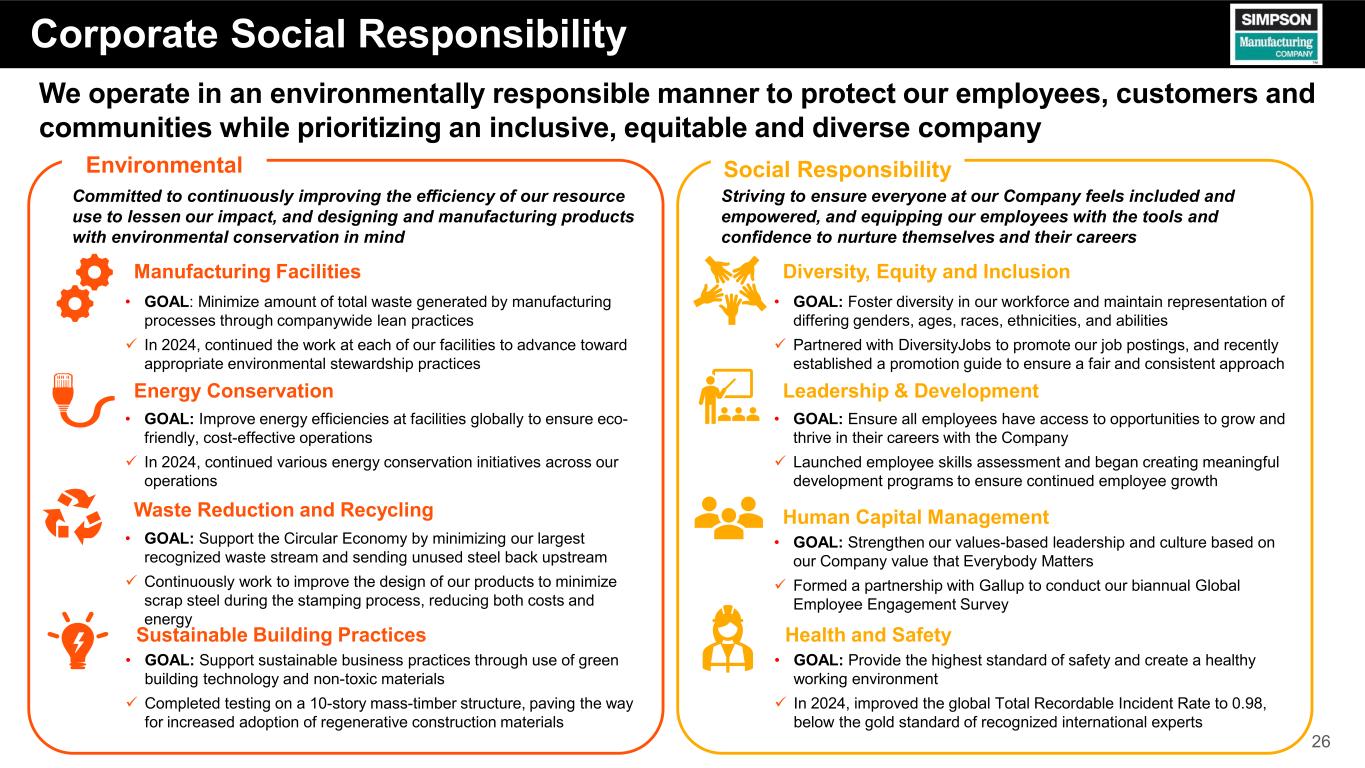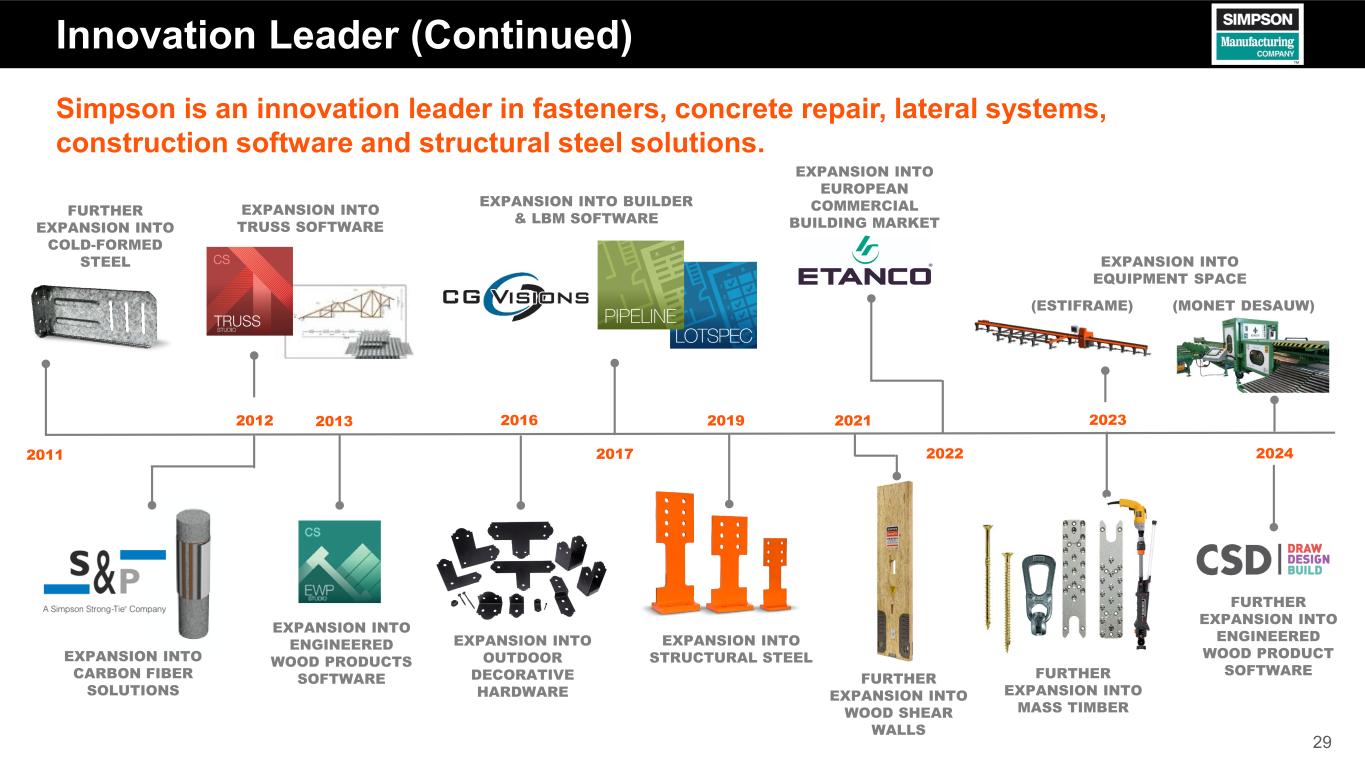 「シンプソン・マニュファクチャリング社のマイク・オロスキー社長兼最高経営責任者(CEO)は、「2024年は、米国と欧州の住宅着工件数が減少した厳しい年でしたが、売上高は小幅ながら増加しました。「北米では、出荷ポンド数の伸びが米国の住宅着工件数を約600ベーシスポイント上回ったことを大変嬉しく思います。ヨーロッパでは、厳しい需要環境にもかかわらず、売上は横ばいでした。"