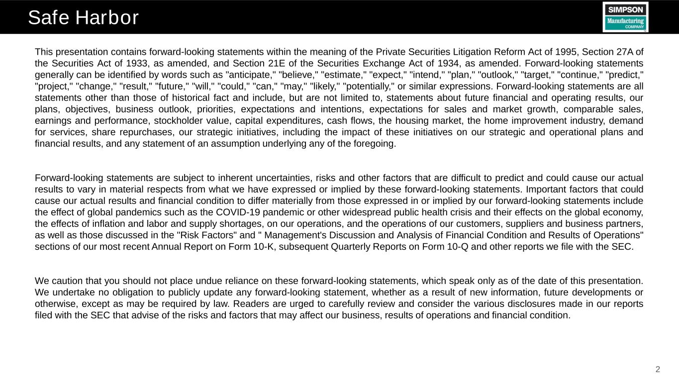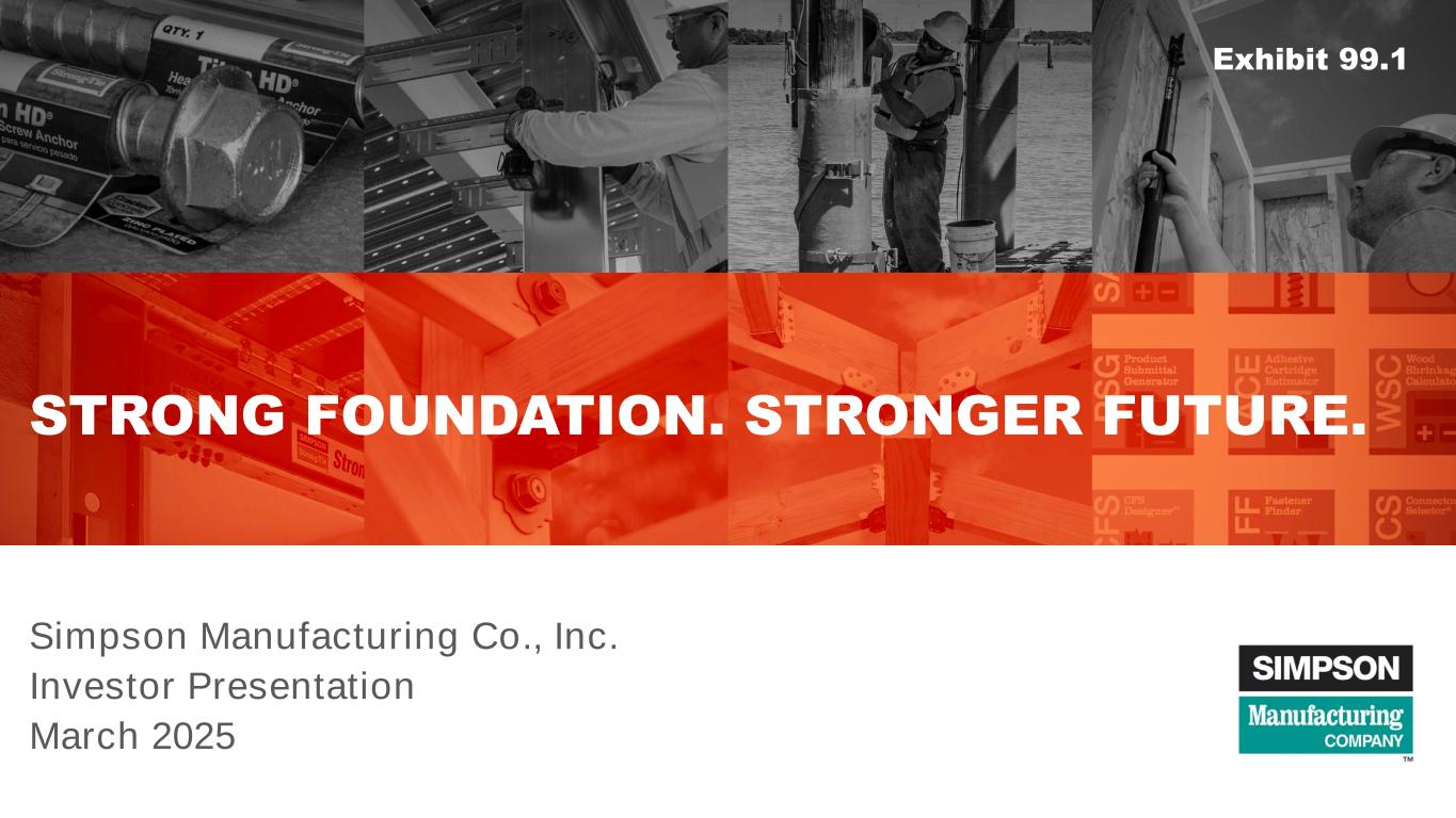 STRONG FOUNDATION. STRONGER FUTURE. Simpson Manufacturing Co., Inc. Investor Presentation March 2025 Exhibit 99.1