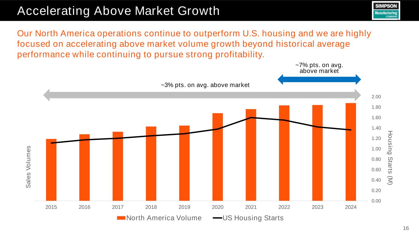 15 Historical Market and Financial Performance Total Company Revenue & Profitability Relative to U.S. Housing Starts 2006 2007 2008 2009 2010 2011 2012 2013 2014 2015 2016 2017 2018 2019 2020 2021 2022 2023 2024 0.0 0.2 0.4 0.6 0.8 1.0 1.2 1.4 1.6 1.8 2.0 $0 $200 $400 $600 $800 $1,000 $1,200 $1,400 $1,600 $1,800 $2,000 $2,200 $2,400 H o u s in g S ta rts (M ) ($ M ) North America Net Sales Total Net Sales Gross Profit Income from Operations Housing Starts