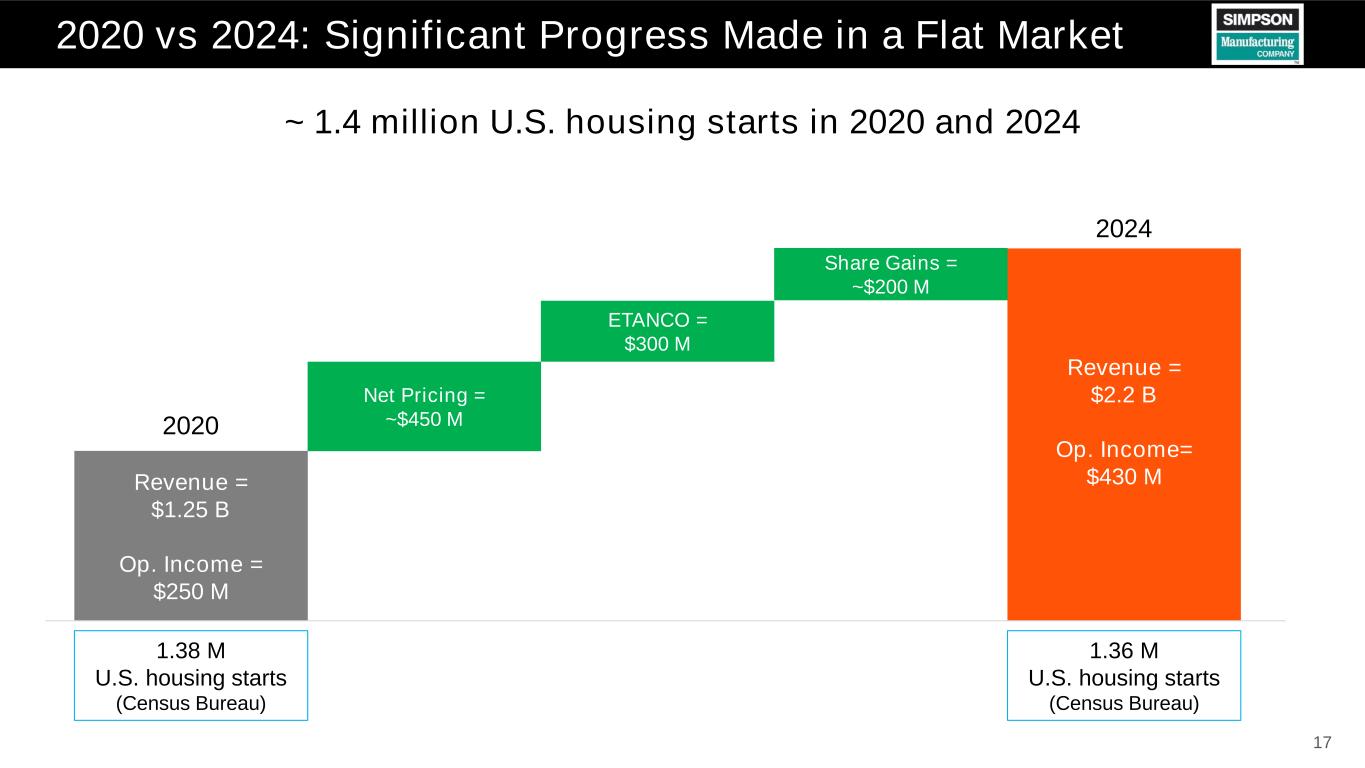 17 2020 vs 2024: Significant Progress Made in a Flat Market ~ 1.4 million U.S. housing starts in 2020 and 2024 Revenue = $1.25 B Op. Income = $250 M Net Pricing = ~$450 M Revenue = $2.2 B Op. Income= $430 M ETANCO = $300 M Share Gains = ~$200 M 2020 2024 1.38 M U.S. housing starts (Census Bureau) 1.36 M U.S. housing starts (Census Bureau)