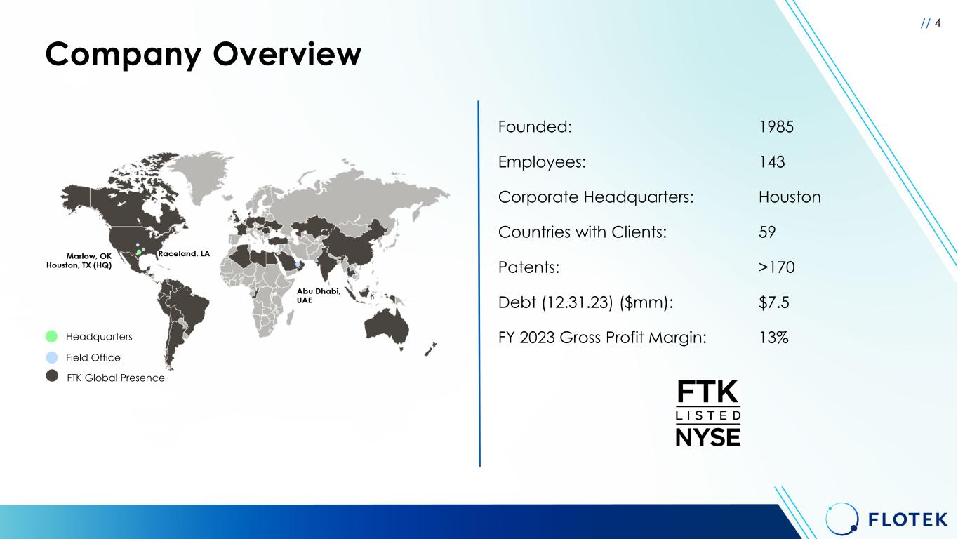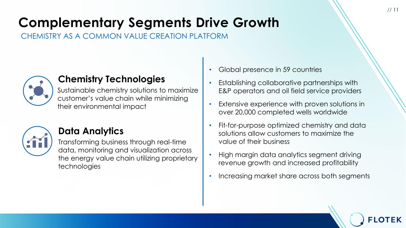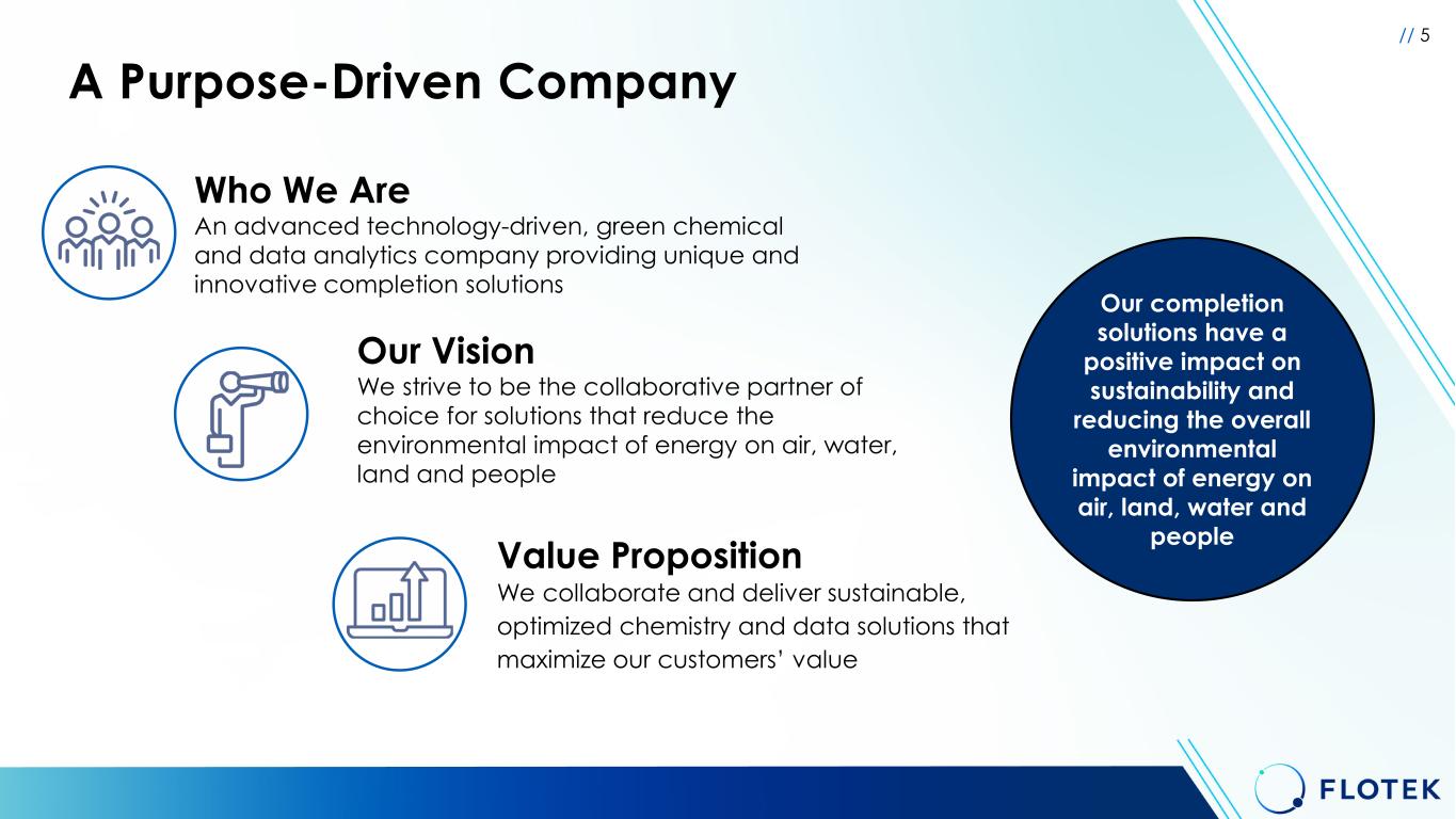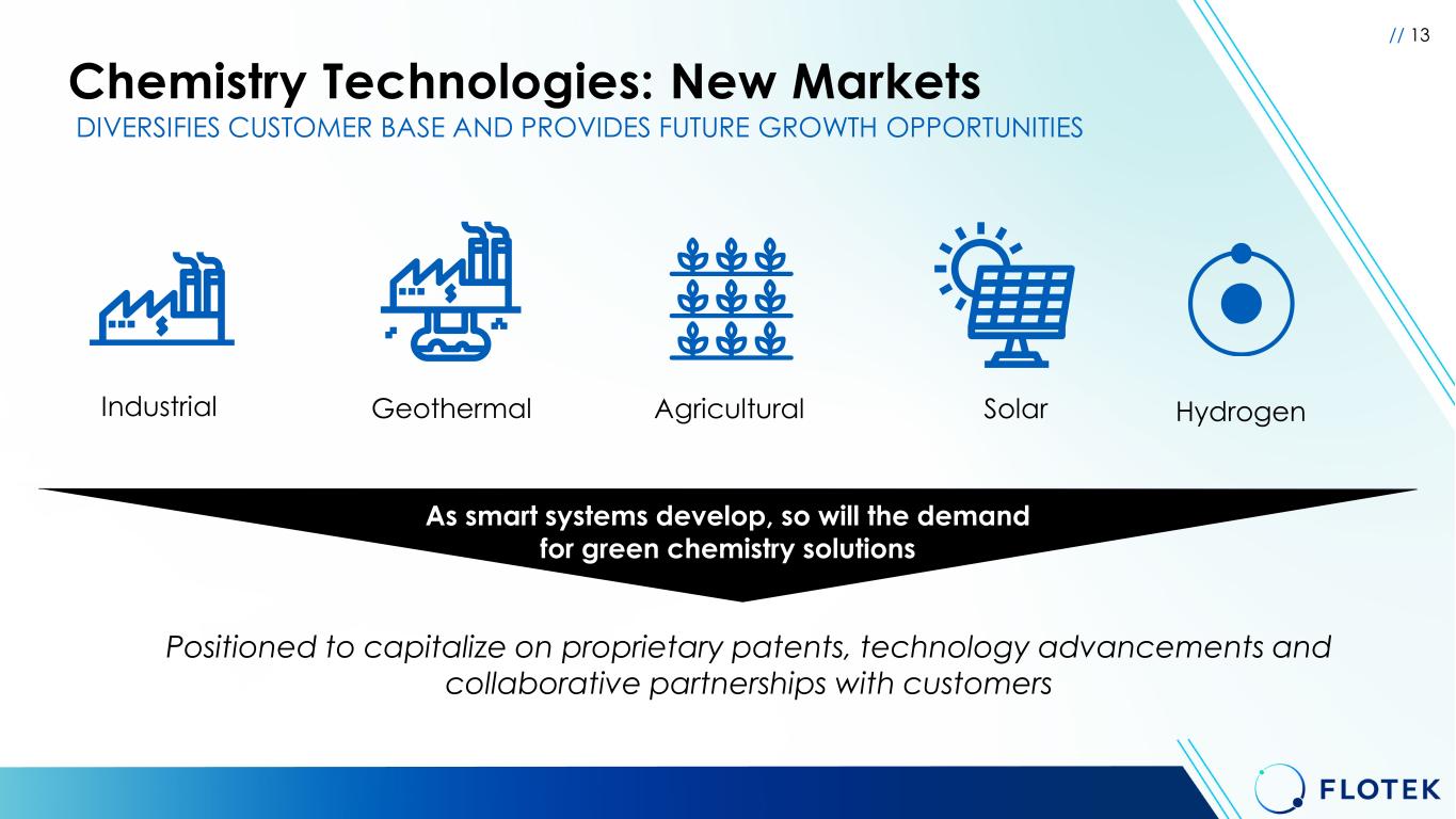 Flotek Industries, Inc. is an advanced technology-driven, green chemical and data analytics company providing unique and innovative completion solutions that have a proven, positive impact on sustainability and reducing the overall environmental impact of energy on air, land, water and people. Flotek has an intellectual property portfolio of over 170 patents and a global presence in more than 59 countries throughout North America, Latin America, the Middle East and North Africa. Flotek has established collaborative partnerships focused on sustainable and optimized chemistry and data solutions which improve well performance and allow its customers to generate higher returns on invested capital.