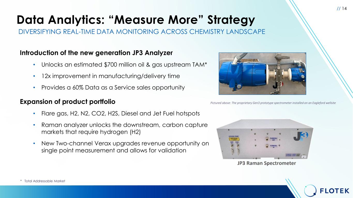 Flotek continues to test the next generation version of its proprietary JP3 Verax Near InfraRed measurement system (“JP3”). JP3 represents the foundational technology behind the Company’s Data Analytics business, which supports customers through real-time data, monitoring, and visualization across the energy value chain. The new JP3 analyzer is currently undergoing extensive field-trial testing with customer deployment expected by mid-2024. The new unit’s engineering advances will facilitate scale and accelerated pace of production along with a reduction in manufacturing costs allowing access to markets that are currently unavailable.
