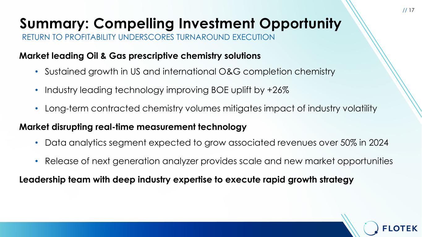 フローテックは、2024年第1四半期の財務・営業業績の発表に合わせて2024年のガイダンスを発表する予定であり、これは昨年のタイミングと同じである。