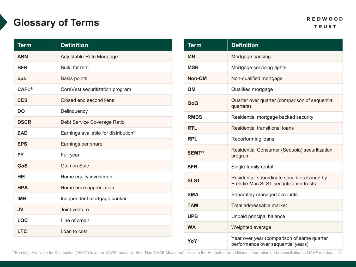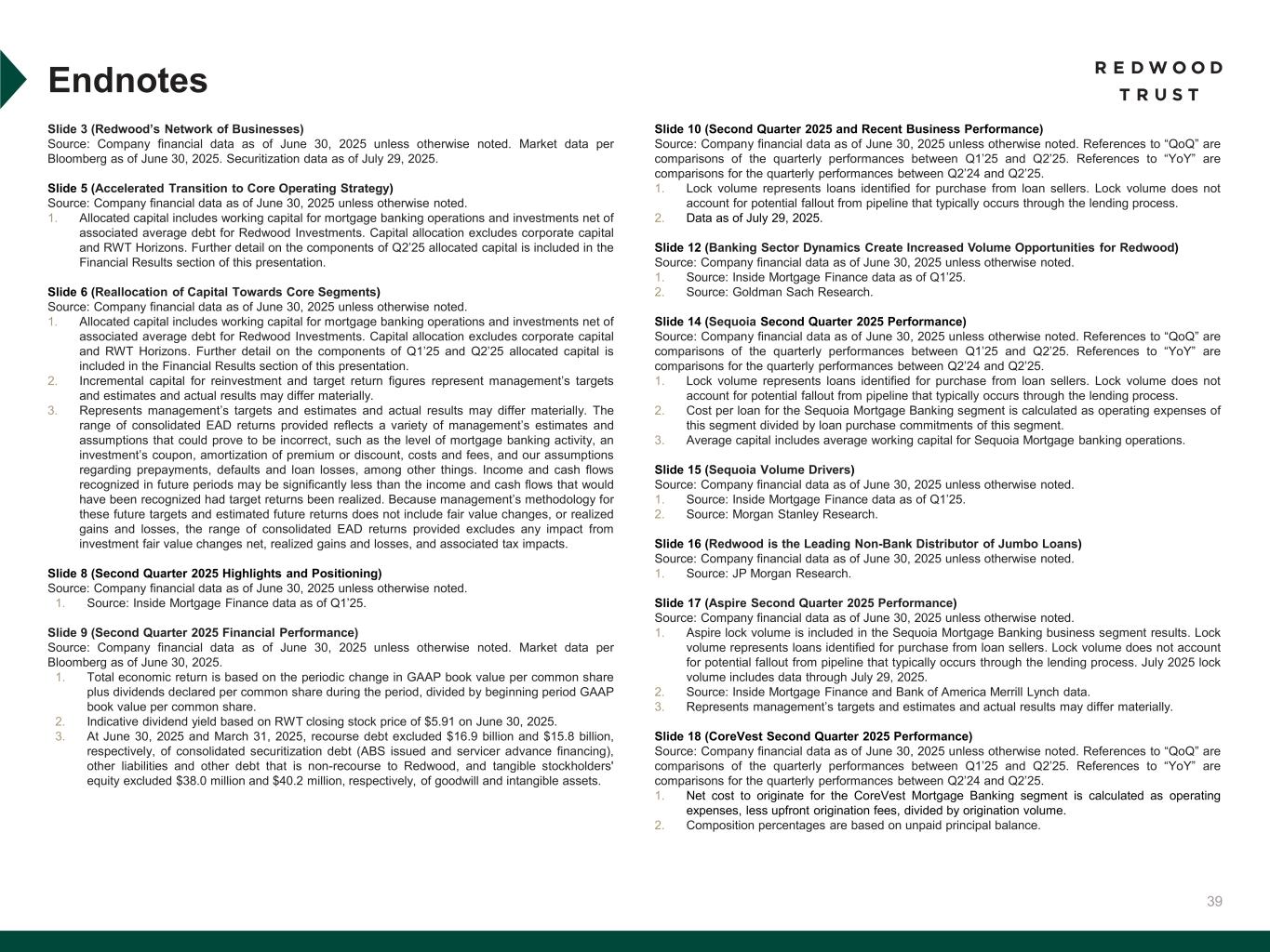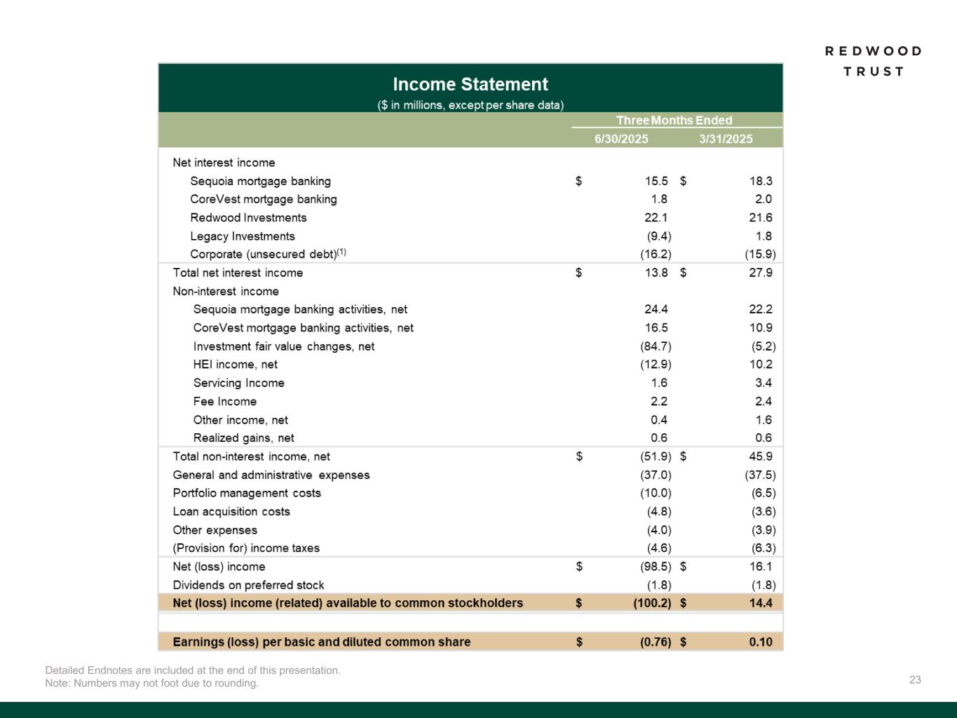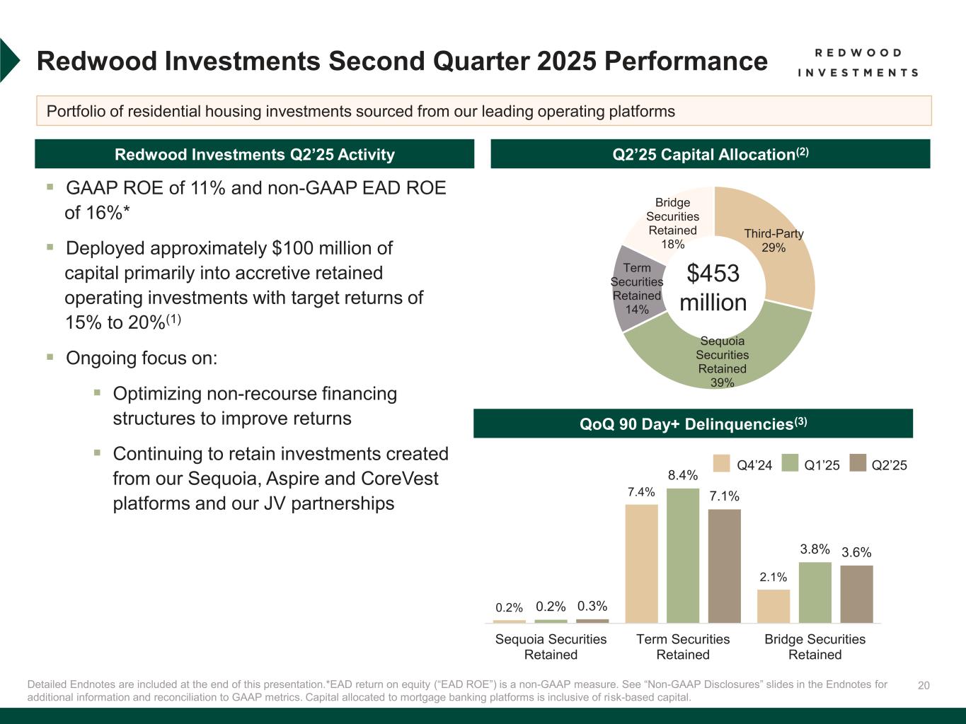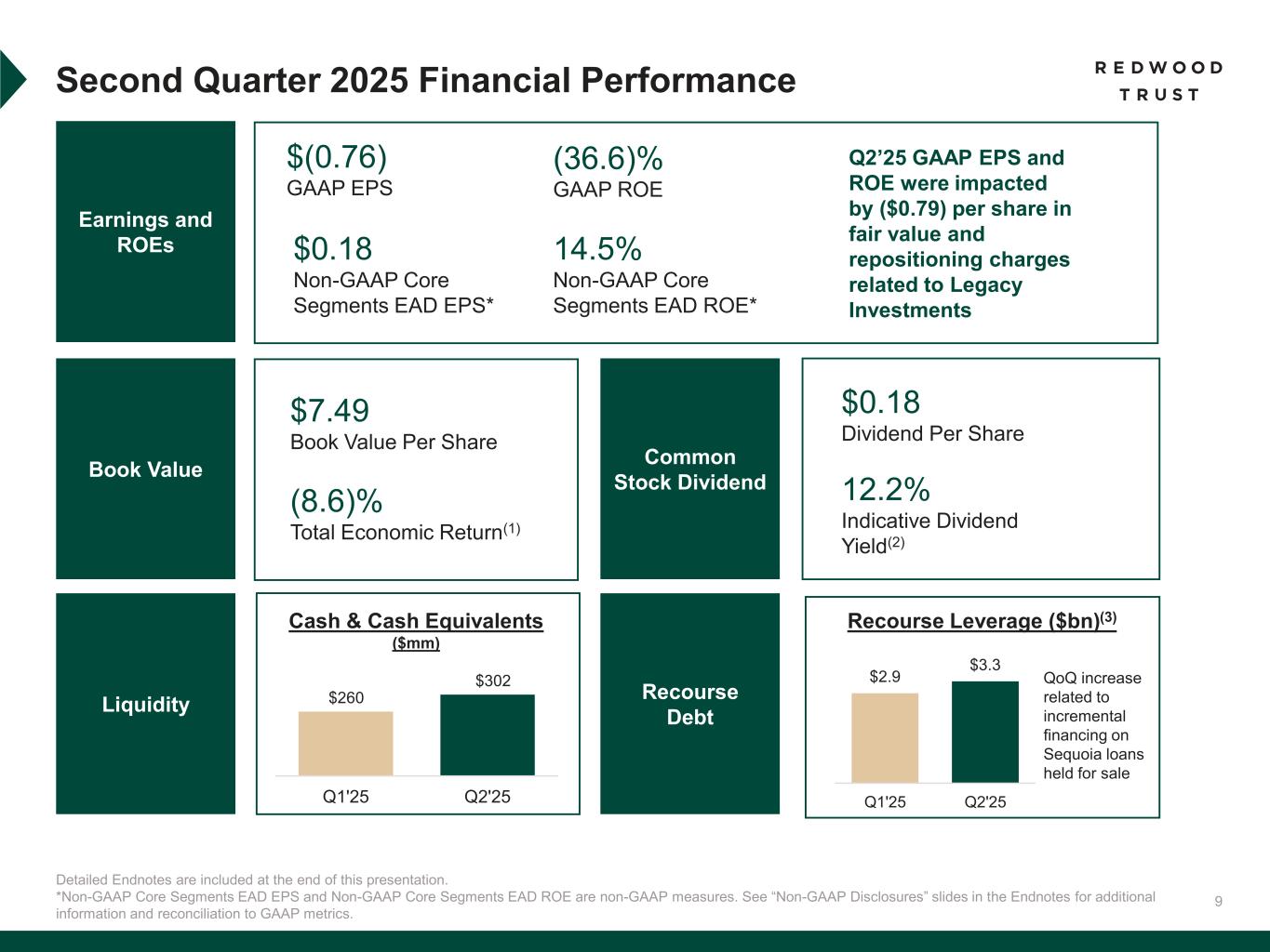 カリフォルニア州ミルバレー発-住宅購入者や賃貸住宅入居者の住宅アクセスを拡大するリーダー企業であるレッドウッド・トラスト・インク(NYSE:RWT、以下「レッドウッド」、「当社」)は本日、2025年6月30日に終了した四半期決算を発表しました。また、2024年3月のインベスター・デイで発表した拡張可能で簡素化された事業モデルへの移行を早めること、および自社株買いの増額を発表しました。