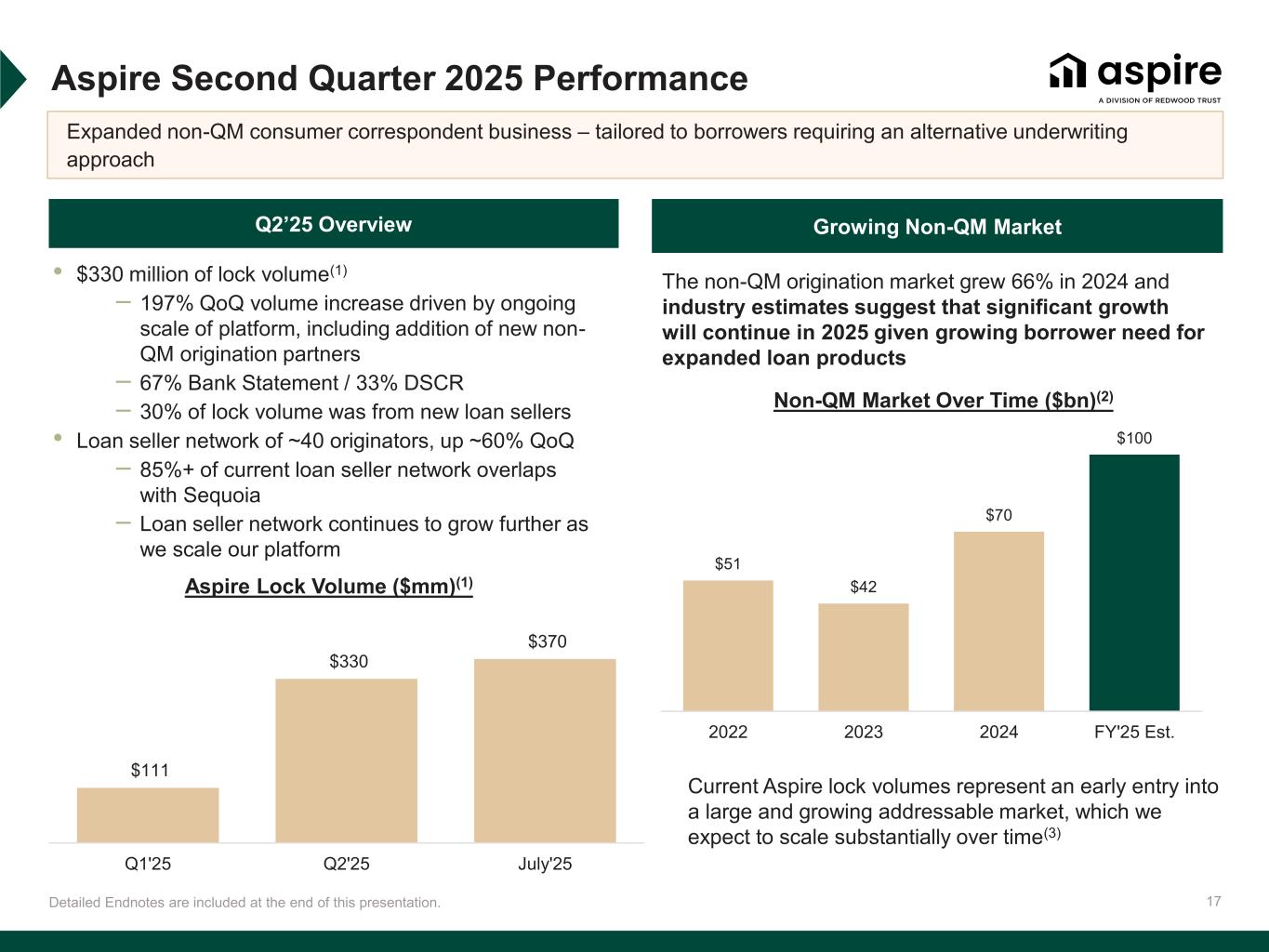 ロック・ボリュームにはアスパイア・ローン3億3,000万ドルが含まれ、2025年第1四半期から197%増加(6)