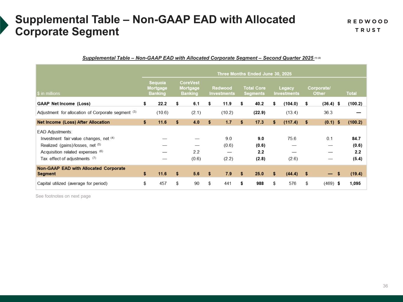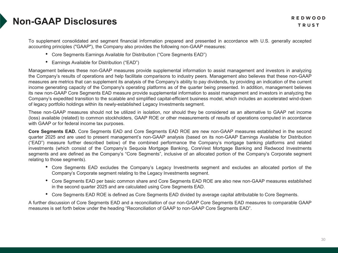 -2025年第2四半期に、レッドウッドの長期戦略目標の中核ではない資産の財務結果を表示するために、新たな報告セグメントを設立。