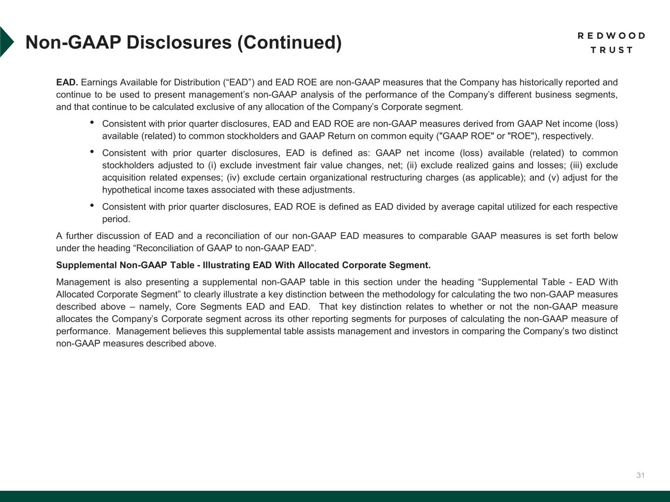 -非GAAPベースの中核セグメントの分配可能利益(「中核セグメントのEAD」)は2,500万ドル、または基本的普通株式1株当たり0.18ドル(「非GAAP開示」の項の非GAAPベースの調整表を参照)(3)