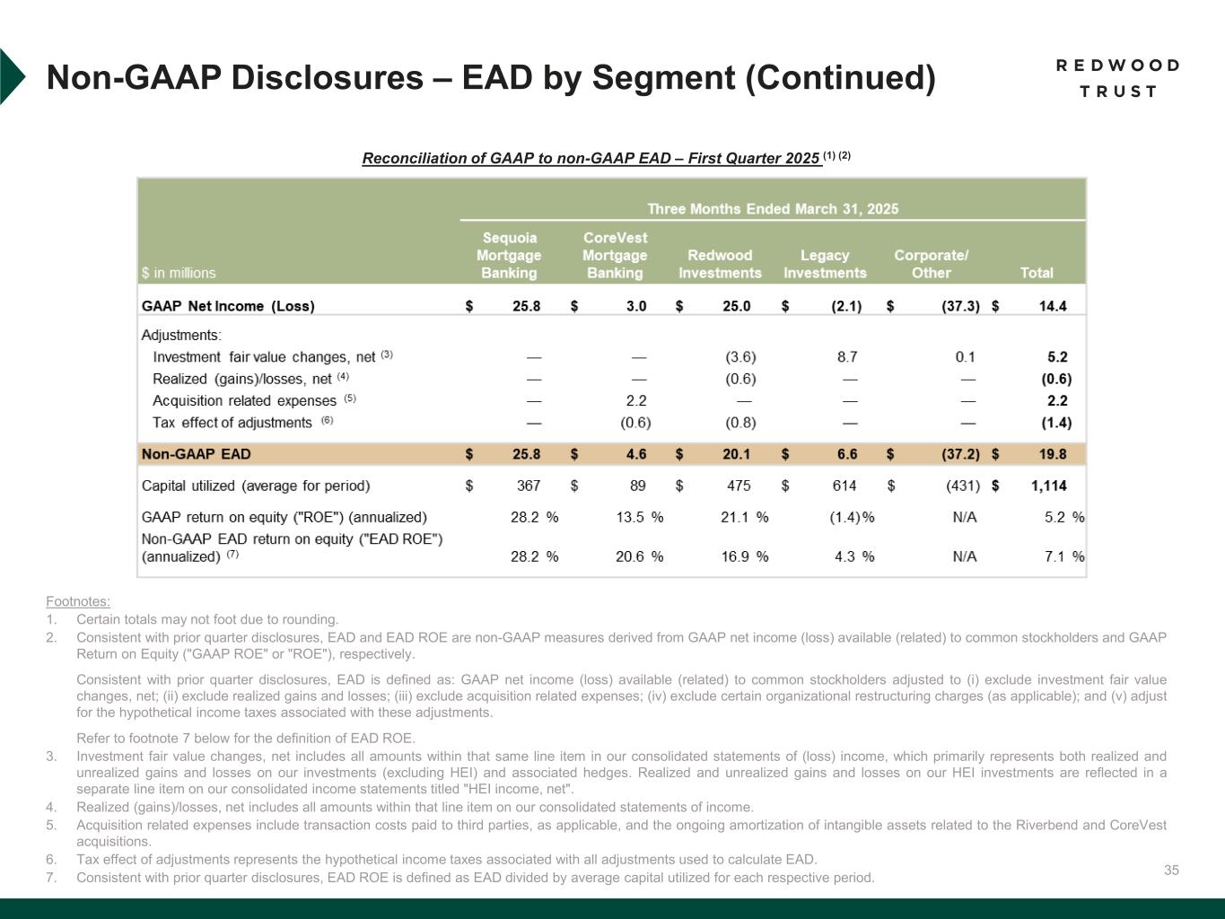 -GAAP ベース ROE は年率 27%、非 GAAP ベース EAD ベース ROE は年率 34%を達成(4)