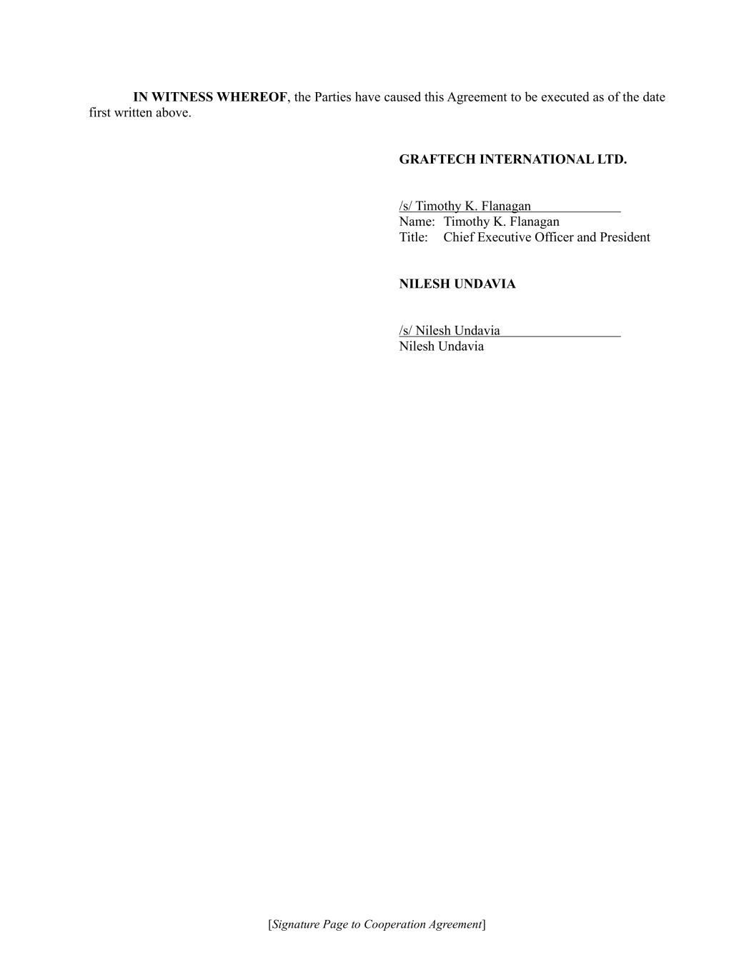 [Signature Page to Cooperation Agreement] IN WITNESS WHEREOF, the Parties have caused this Agreement to be executed as of the date first written above. GRAFTECH INTERNATIONAL LTD. /s/ Timothy K. Flanagan Name: Timothy K. Flanagan Title: Chief Executive Officer and President NILESH UNDAVIA /s/ Nilesh Undavia Nilesh Undavia