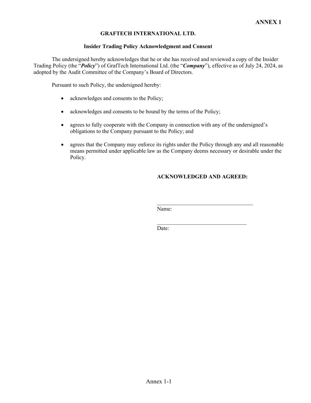 References herein to the “Company,” “GrafTech,” “we,” “our,” or “us” refer collectively to GrafTech International Ltd. and its subsidiaries.
