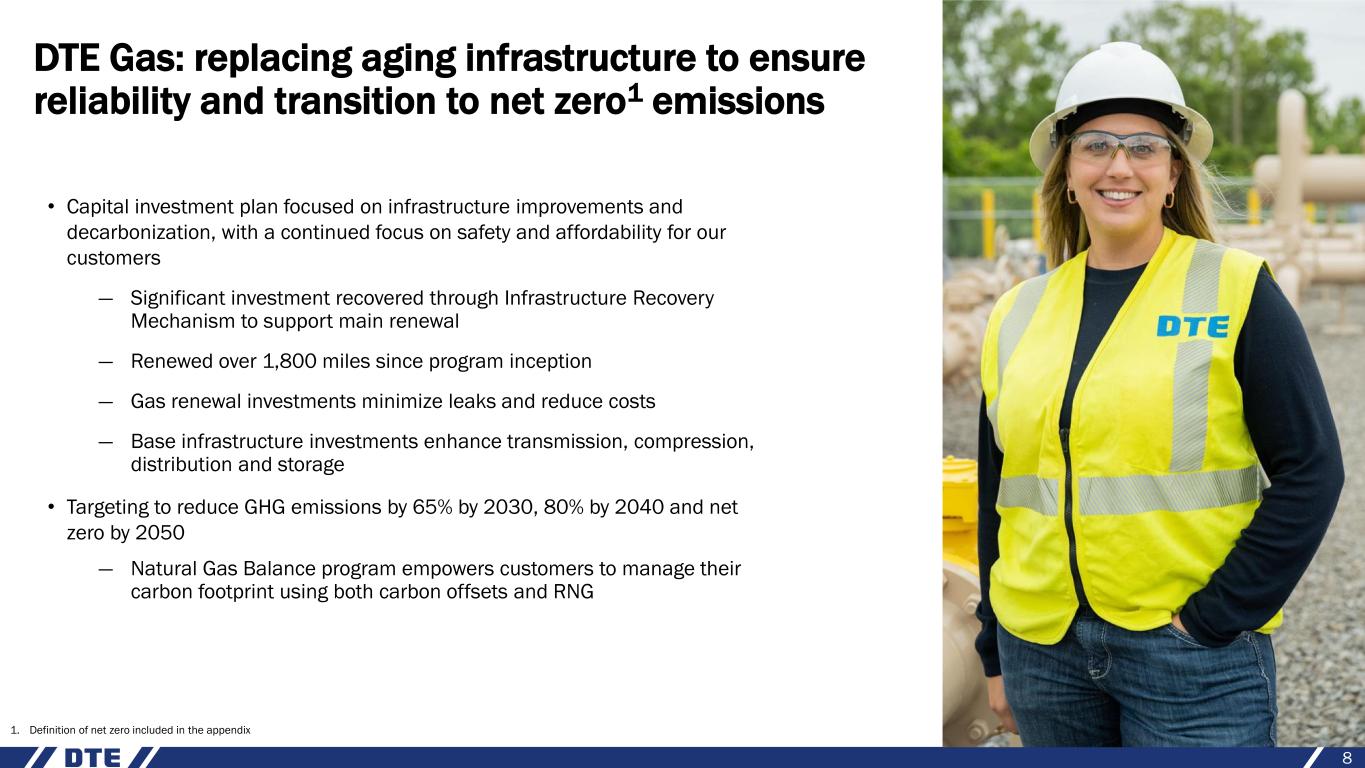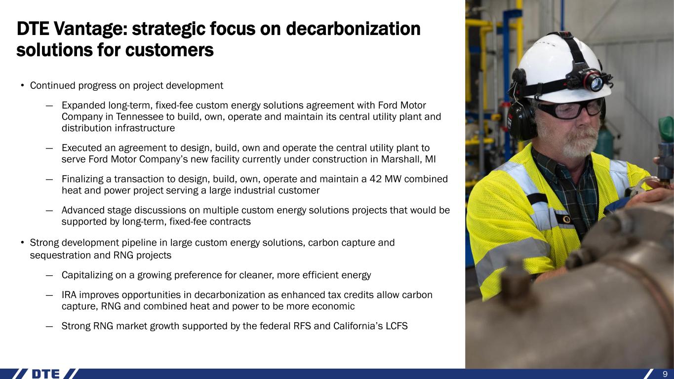Safe harbor statement 2 The information contained herein is as of the date of this document. DTE Energy expressly disclaims any current intention to update any forward-looking statements contained in this document as a result of new information or future events or developments. Words such as “anticipate,” “believe,” “expect,” “may,” “could,” “projected,” “aspiration,” “plans” and “goals” signify forward-looking statements. Forward-looking statements are not guarantees of future results and conditions but rather are subject to various assumptions, risks and uncertainties that may cause actual future results to be materially different from those contemplated, projected, estimated or budgeted. Many factors may impact forward-looking statements including, but not limited to, the following: the impact of regulation by the EPA, EGLE, the FERC, the MPSC, the NRC, and for DTE Energy, the CFTC and CARB, as well as other applicable governmental proceedings and regulations, including any associated impact on rate structures; the amount and timing of cost recovery allowed as a result of regulatory proceedings, related appeals, or new legislation, including legislative amendments and retail access programs; economic conditions and population changes in our geographic area resulting in changes in demand, customer conservation, and thefts of electricity and, for DTE Energy, natural gas; the operational failure of electric or gas distribution systems or infrastructure; impact of volatility in prices in international steel markets and in prices of environmental attributes generated from renewable natural gas investments on the operations of DTE Vantage; the risk of a major safety incident; environmental issues, laws, regulations, and the increasing costs of remediation and compliance, including actual and potential new federal and state requirements; the cost of protecting assets and customer data against, or damage due to, cyber incidents and terrorism; health, safety, financial, environmental, and regulatory risks associated with ownership and operation of nuclear facilities; volatility in commodity markets, deviations in weather and related risks impacting the results of DTE Energy’s energy trading operations; changes in the cost and availability of coal and other raw materials, purchased power, and natural gas; advances in technology that produce power, store power or reduce power consumption; changes in the financial condition of significant customers and strategic partners; the potential for losses on investments, including nuclear decommissioning trust and benefit plan assets and the related increases in future expense and contributions; access to capital markets and the results of other financing efforts which can be affected by credit agency ratings; instability in capital markets which could impact availability of short and long-term financing; impacts of inflation and the timing and extent of changes in interest rates; the level of borrowings; the potential for increased costs or delays in completion of significant capital projects; changes in, and application of, federal, state, and local tax laws and their interpretations, including the Internal Revenue Code, regulations, rulings, court proceedings, and audits; the effects of weather and other natural phenomena, including climate change, on operations and sales to customers, and purchases from suppliers; unplanned outages at our generation plants; employee relations and the impact of collective bargaining agreements; the availability, cost, coverage, and terms of insurance and stability of insurance providers; cost reduction efforts and the maximization of plant and distribution system performance; the effects of competition; changes in and application of accounting standards and financial reporting regulations; changes in federal or state laws and their interpretation with respect to regulation, energy policy, and other business issues; successful execution of new business development and future growth plans; contract disputes, binding arbitration, litigation, and related appeals; the ability of the electric and gas utilities to achieve net zero emissions goals; and the risks discussed in DTE Energy’s public filings with the Securities and Exchange Commission. New factors emerge from time to time. We cannot predict what factors may arise or how such factors may cause results to differ materially from those contained in any forward-looking statement. Any forward-looking statements speak only as of the date on which such statements are made. We undertake no obligation to update any forward-looking statement to reflect events or circumstances after the date on which such statement is made or to reflect the occurrence of unanticipated events. This document should also be read in conjunction with the Forward-Looking Statements section in DTE Energy’s public filings with the Securities and Exchange Commission.