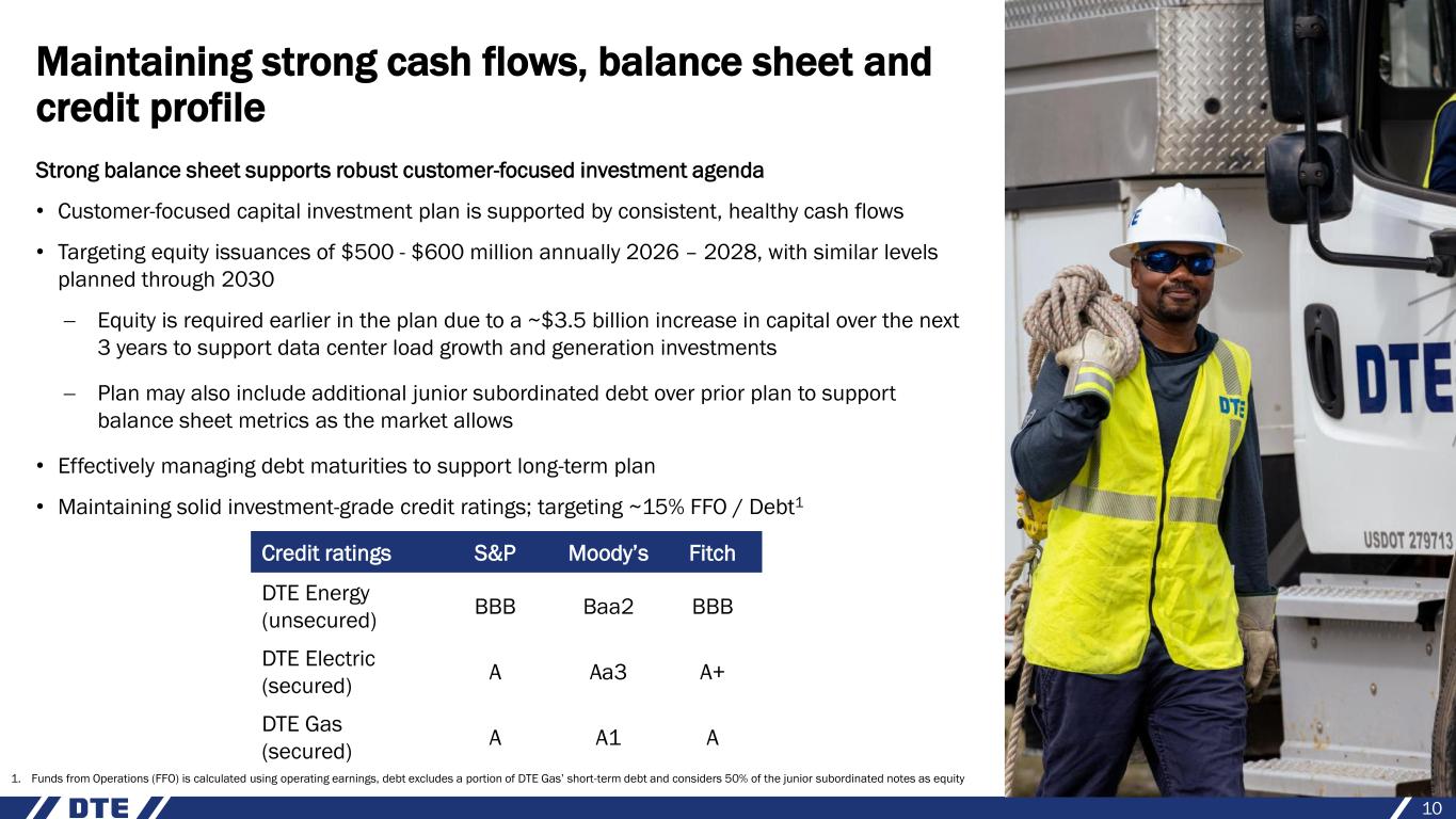Safe harbor statement 2 The information contained herein is as of the date of this document. DTE Energy expressly disclaims any current intention to update any forward-looking statements contained in this document as a result of new information or future events or developments. Words such as “anticipate,” “believe,” “expect,” “may,” “could,” “projected,” “aspiration,” “plans” and “goals” signify forward-looking statements. Forward-looking statements are not guarantees of future results and conditions but rather are subject to various assumptions, risks and uncertainties that may cause actual future results to be materially different from those contemplated, projected, estimated or budgeted. Many factors may impact forward-looking statements including, but not limited to, the following: the impact of regulation by the EPA, EGLE, the FERC, the MPSC, the NRC, and for DTE Energy, the CFTC and CARB, as well as other applicable governmental proceedings and regulations, including any associated impact on rate structures; the amount and timing of cost recovery allowed as a result of regulatory proceedings, related appeals, or new legislation, including legislative amendments and retail access programs; economic conditions and population changes in our geographic area resulting in changes in demand, customer conservation, and thefts of electricity and, for DTE Energy, natural gas; the operational failure of electric or gas distribution systems or infrastructure; impact of volatility in prices in international steel markets and in prices of environmental attributes generated from renewable natural gas investments on the operations of DTE Vantage; the risk of a major safety incident; environmental issues, laws, regulations, and the increasing costs of remediation and compliance, including actual and potential new federal and state requirements; the cost of protecting assets and customer data against, or damage due to, cyber incidents and terrorism; health, safety, financial, environmental, and regulatory risks associated with ownership and operation of nuclear facilities; volatility in commodity markets, deviations in weather and related risks impacting the results of DTE Energy’s energy trading operations; changes in the cost and availability of coal and other raw materials, purchased power, and natural gas; advances in technology that produce power, store power or reduce or increase power consumption; changes in the financial condition of significant customers and strategic partners; the potential for losses on investments, including nuclear decommissioning trust and benefit plan assets and the related increases in future expense and contributions; access to capital markets and the results of other financing efforts which can be affected by credit agency ratings; instability in capital markets which could impact availability of short and long-term financing; impacts of inflation, tariffs, and the timing and extent of changes in interest rates; the level of borrowings; the potential for increased costs or delays in completion of significant capital projects; changes in, and application of, federal, state, and local tax laws and their interpretations, including the Internal Revenue Code, regulations, rulings, court proceedings, and audits; the effects of weather and other natural phenomena, including climate change, on operations and sales to customers, and purchases from suppliers; unplanned outages at our generation plants; employee relations and the impact of collective bargaining agreements; the availability, cost, coverage, and terms of insurance and stability of insurance providers; cost reduction efforts and the maximization of generation and distribution system performance; the effects of competition; changes in and application of accounting standards and financial reporting regulations; changes in federal or state laws and their interpretation with respect to regulation, energy policy, and other business issues; successful execution of new business development and future growth plans; contract disputes, binding arbitration, litigation, and related appeals; the ability of the electric and gas utilities to achieve goals for carbon emission reductions; and the risks discussed in DTE Energy’s public filings with the Securities and Exchange Commission. New factors emerge from time to time. We cannot predict what factors may arise or how such factors may cause results to differ materially from those contained in any forward-looking statement. Any forward-looking statements speak only as of the date on which such statements are made. We undertake no obligation to update any forward-looking statement to reflect events or circumstances after the date on which such statement is made or to reflect the occurrence of unanticipated events. This document should also be read in conjunction with the Forward-Looking Statements section in DTE Energy’s public filings with the Securities and Exchange Commission.